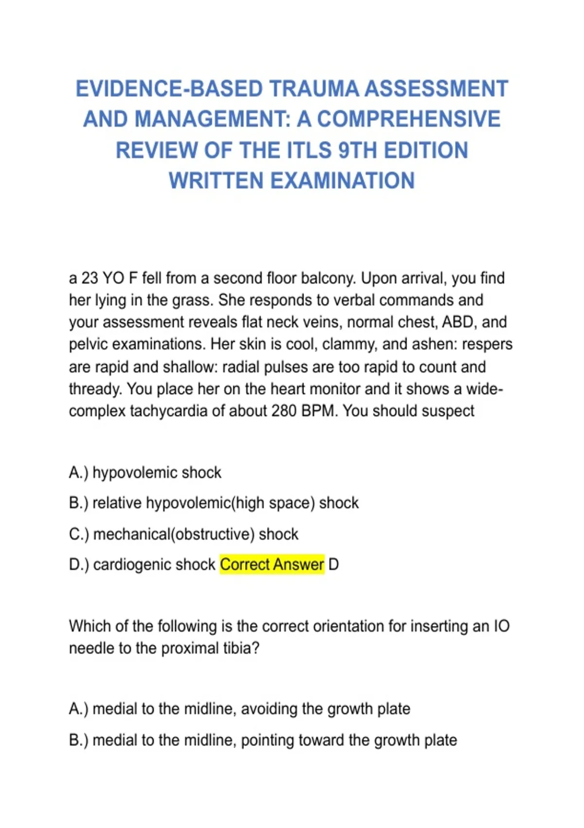 EVIDENCE-BASED TRAUMA ASSESSMENT AND MANAGEMENT: A COMPREHENSIVE REVIEW OF THE ITLS 9TH EDITION WRITTEN EXAMINATION