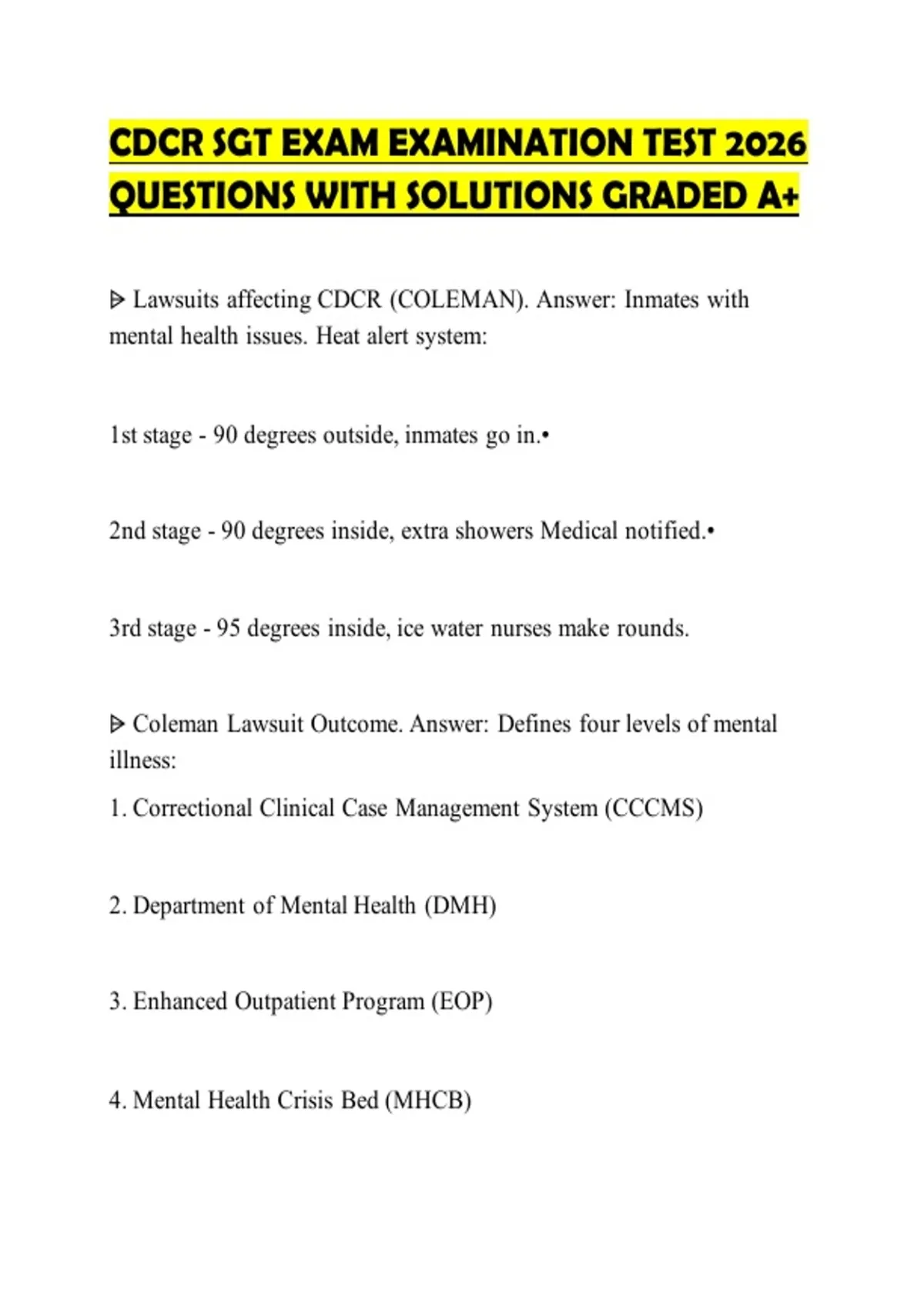 ⩥ Coleman Lawsuit Outcome. Answer: Defines four levels of mental