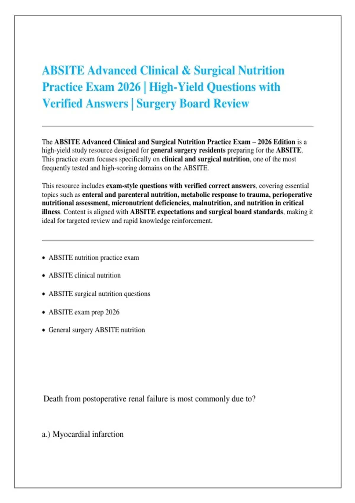 This practice exam focuses specifically on clinical and surgical nutrition, one of the most