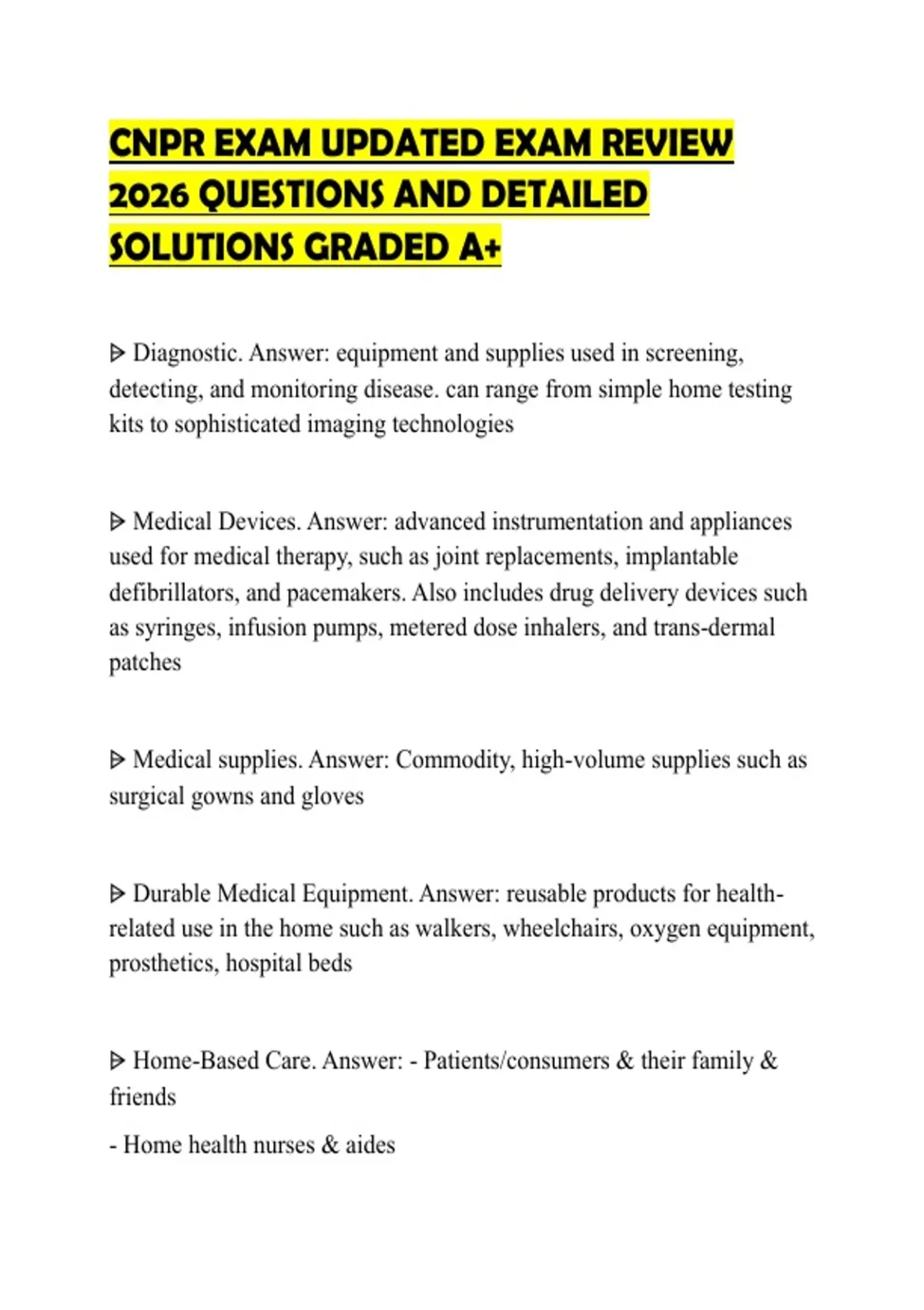 CNPR EXAM UPDATED EXAM REVIEW 2026 QUESTIONS AND DETAILED SOLUTIONS GRADED A+