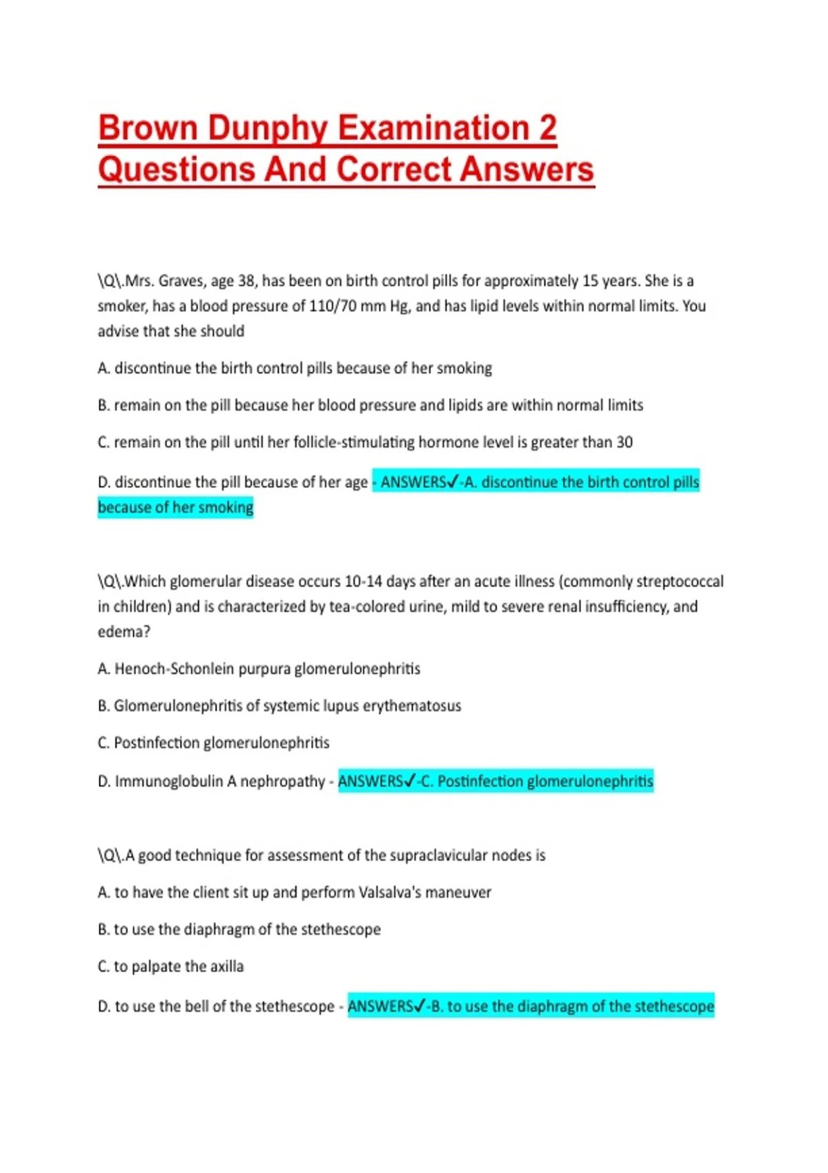 D. Immunoglobulin A nephropathy - ANSWERS✔-C. Postinfection glomerulonephritis
