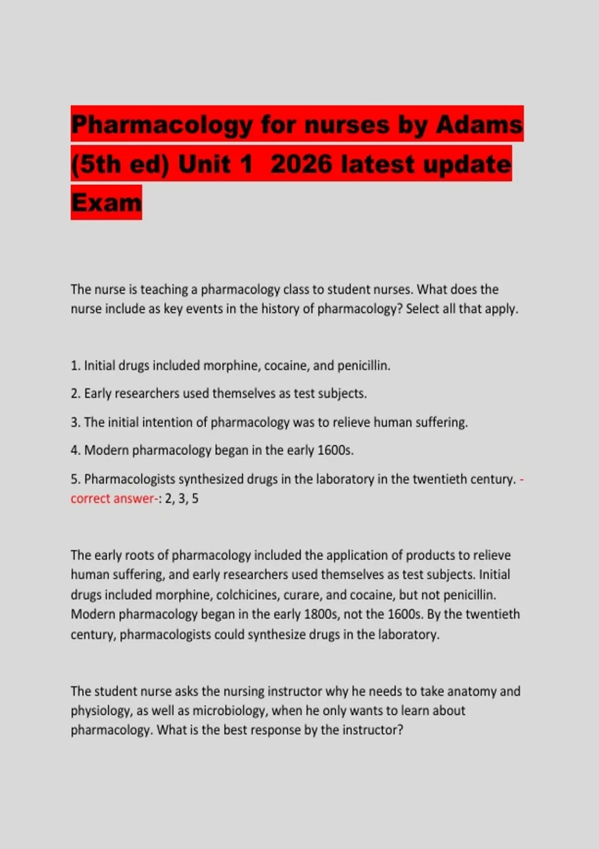 5. "Pharmacology is the study of drugs to prevent disease." - correct answer-: 1, 2