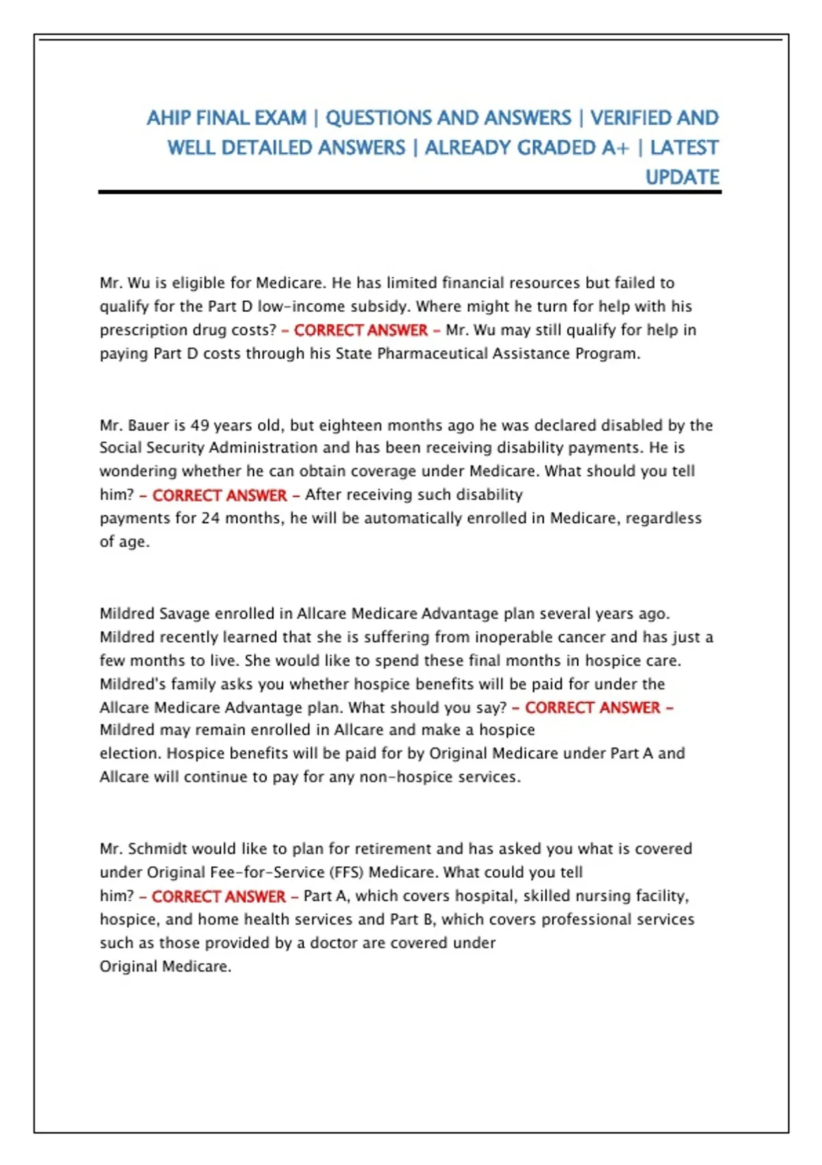 AHIP Final Exam 2025 | Verified Questions & Answers | Graded A+