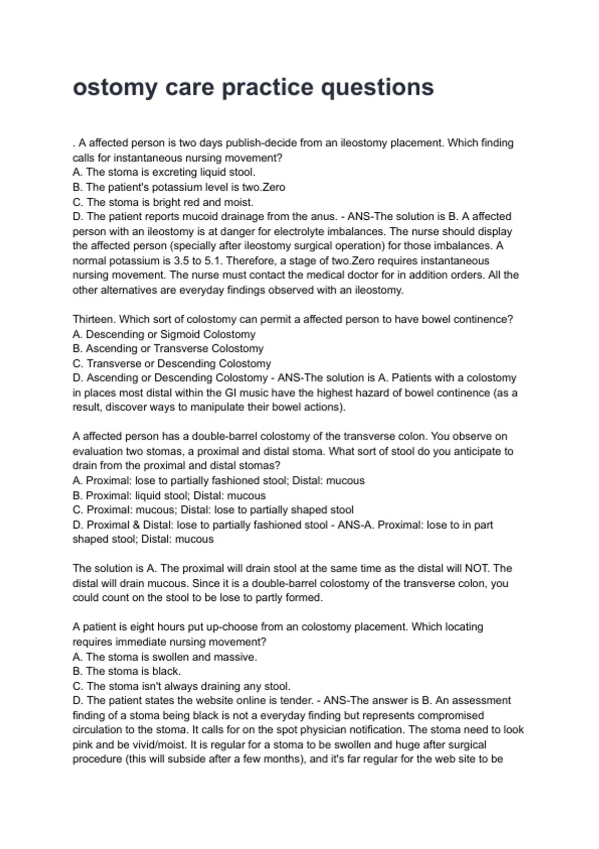 ostomy care practice questions NEWEST 2026/2027 ACTUAL EXAM COMPLETE QUESTIONS AND CORRECT DETAILED ANSWERS (VERIFIED ANSWERS) |ALREADY GRADED A+||BRAND NEW!!