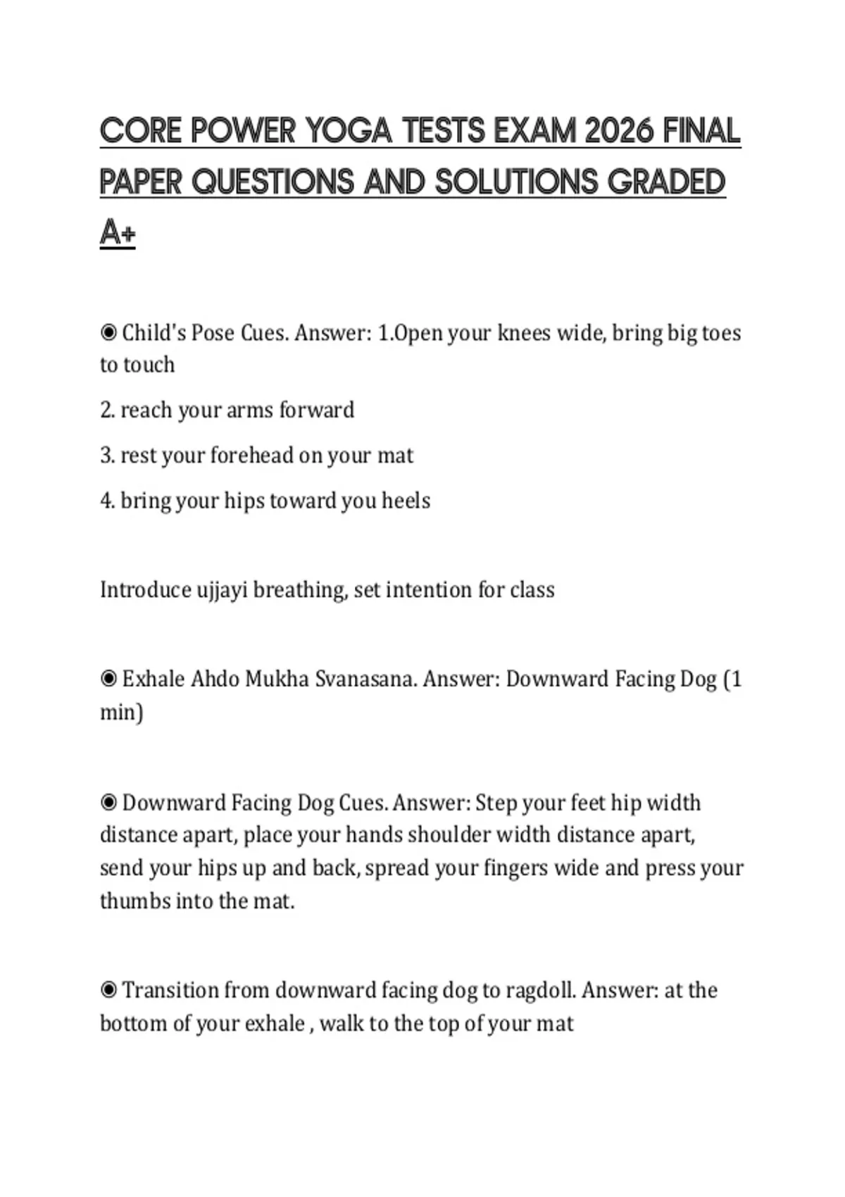 CORE POWER YOGA TESTS EXAM 2026 FINAL PAPER QUESTIONS AND SOLUTIONS GRADED A+