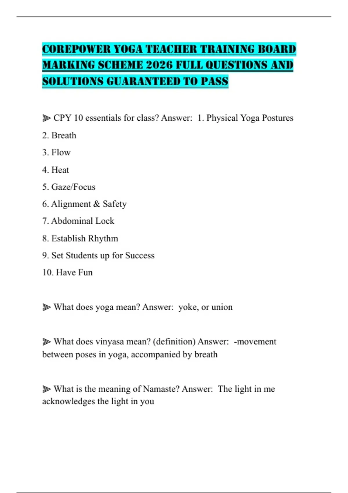 ⫸ CPY 10 essentials for class? Answer: 1. Physical Yoga Postures
