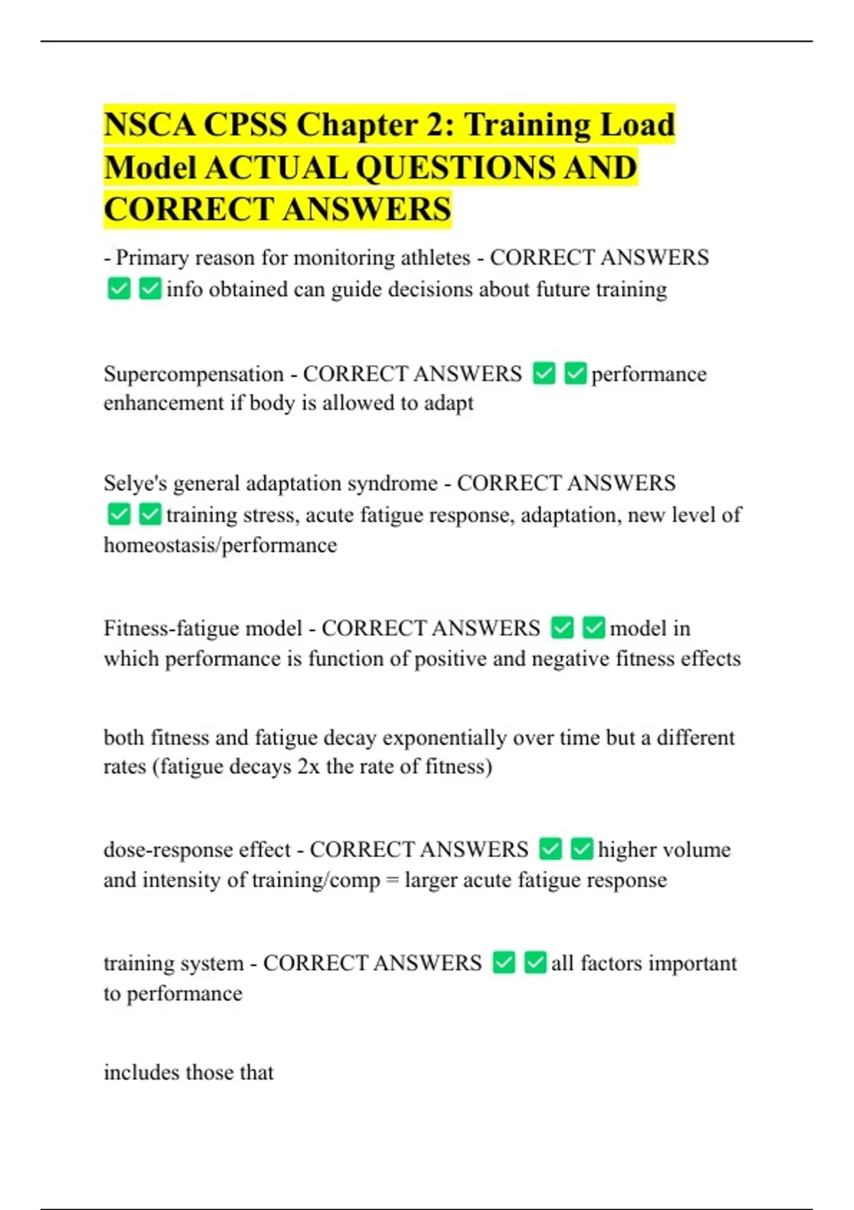 NSCA CPSS Chapter 2: Training Load