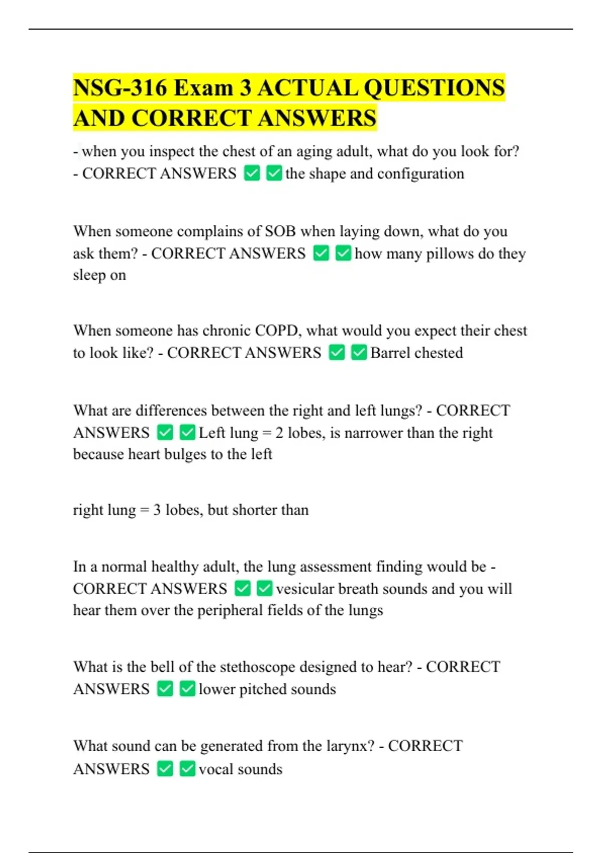 CORRECT ANSWERS vesicular breath sounds and you will