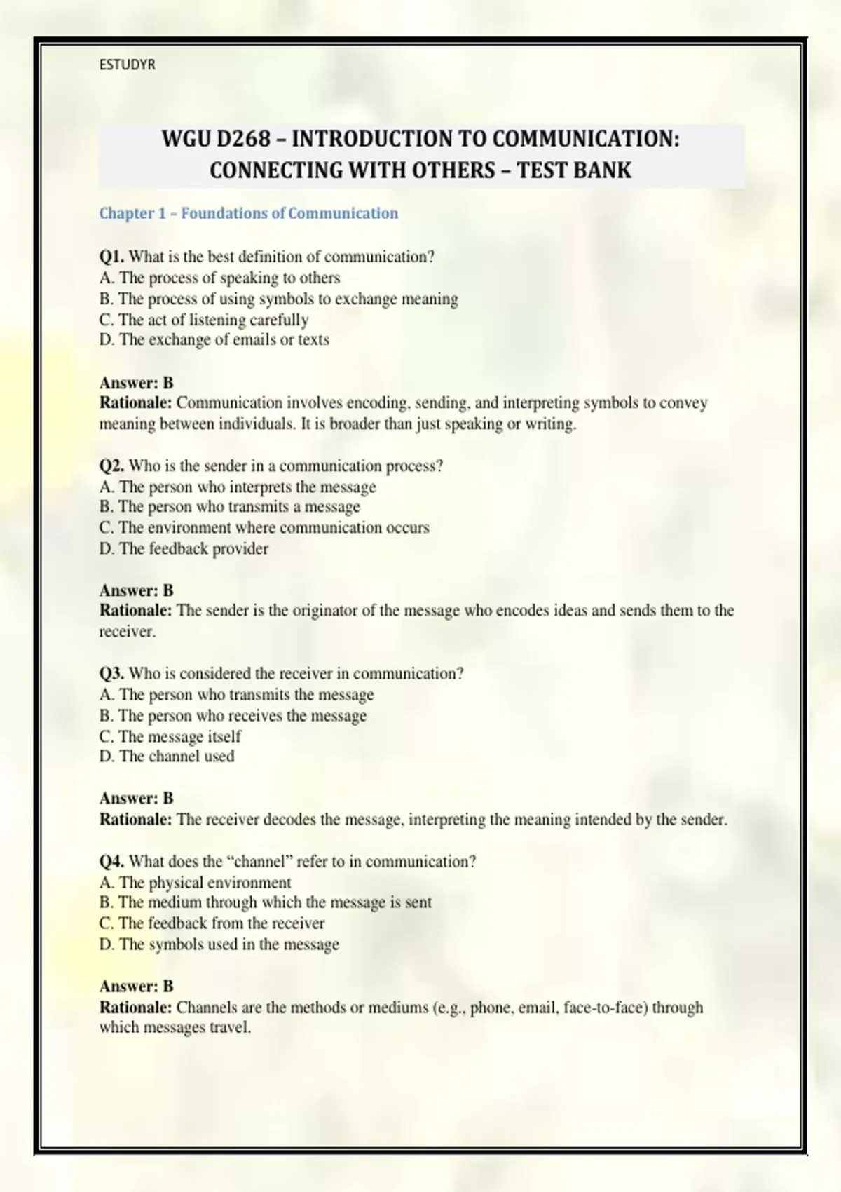 WGU D268 – INTRODUCTION TO COMMUNICATION: