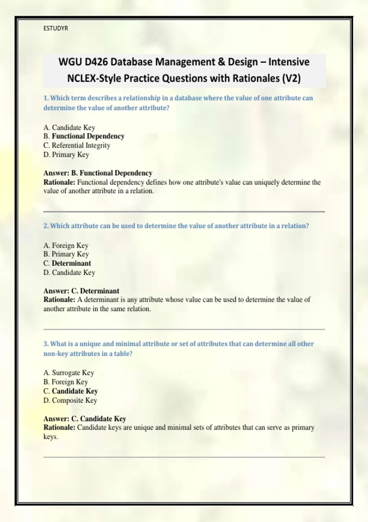 WGU D426 Database Management & Design – Intensive
