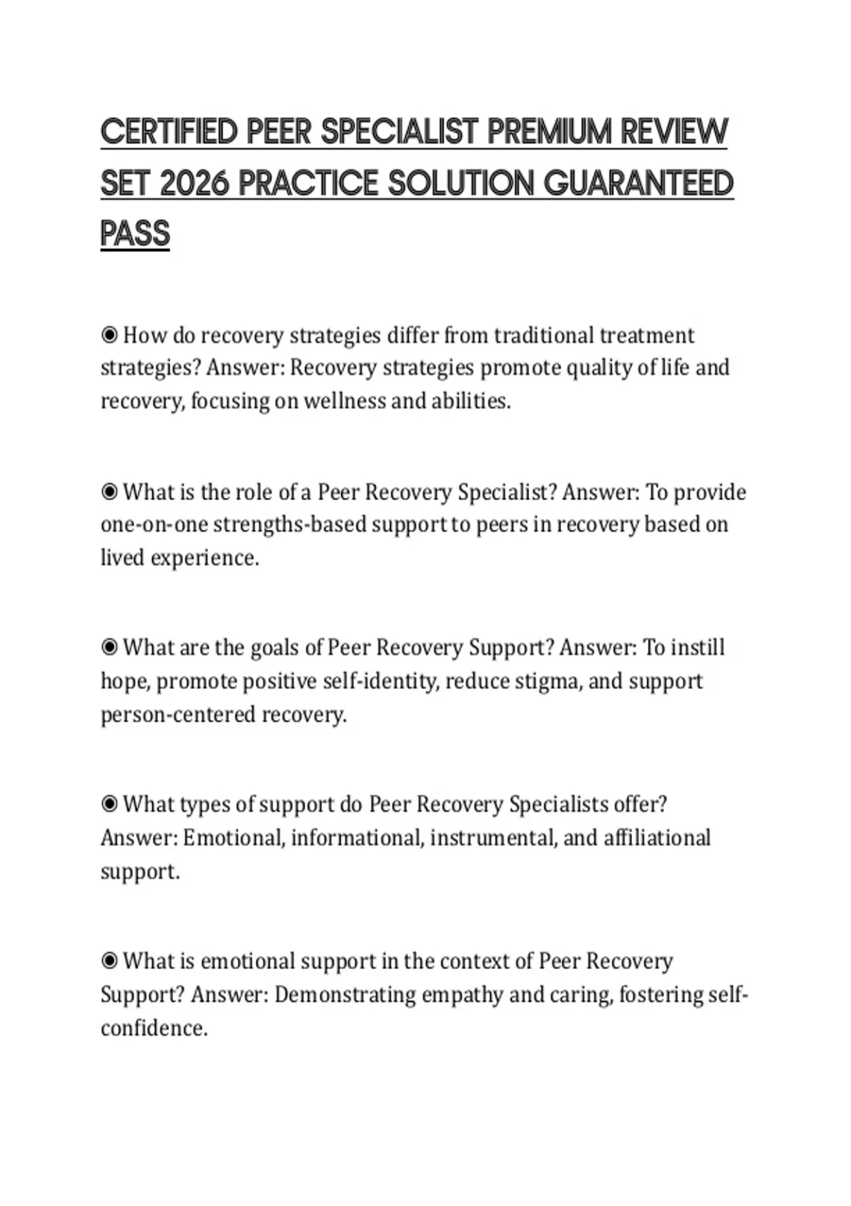 CERTIFIED PEER SPECIALIST PREMIUM REVIEW SET 2026 PRACTICE SOLUTION GUARANTEED PASS