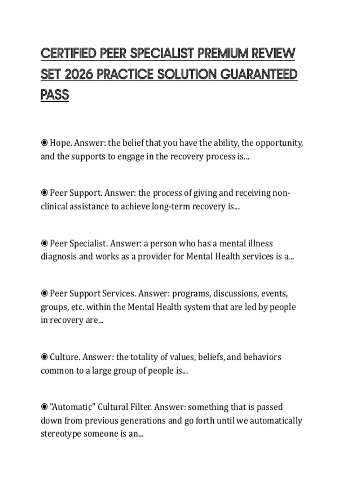 ◉ Peer Specialist. Answer: a person who has a mental illness