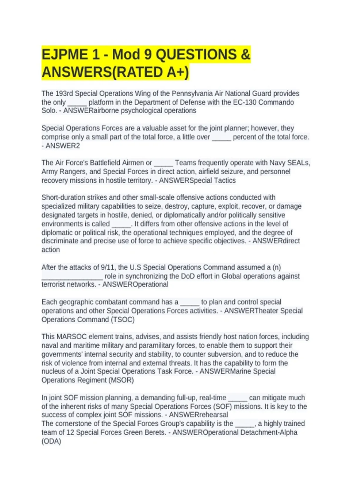 EJPME 1 - Mod 9 QUESTIONS & ANSWERS(RATED A+)