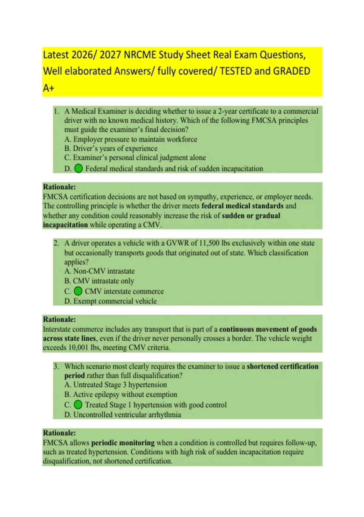driver with no known medical history. Which of the following FMCSA principles