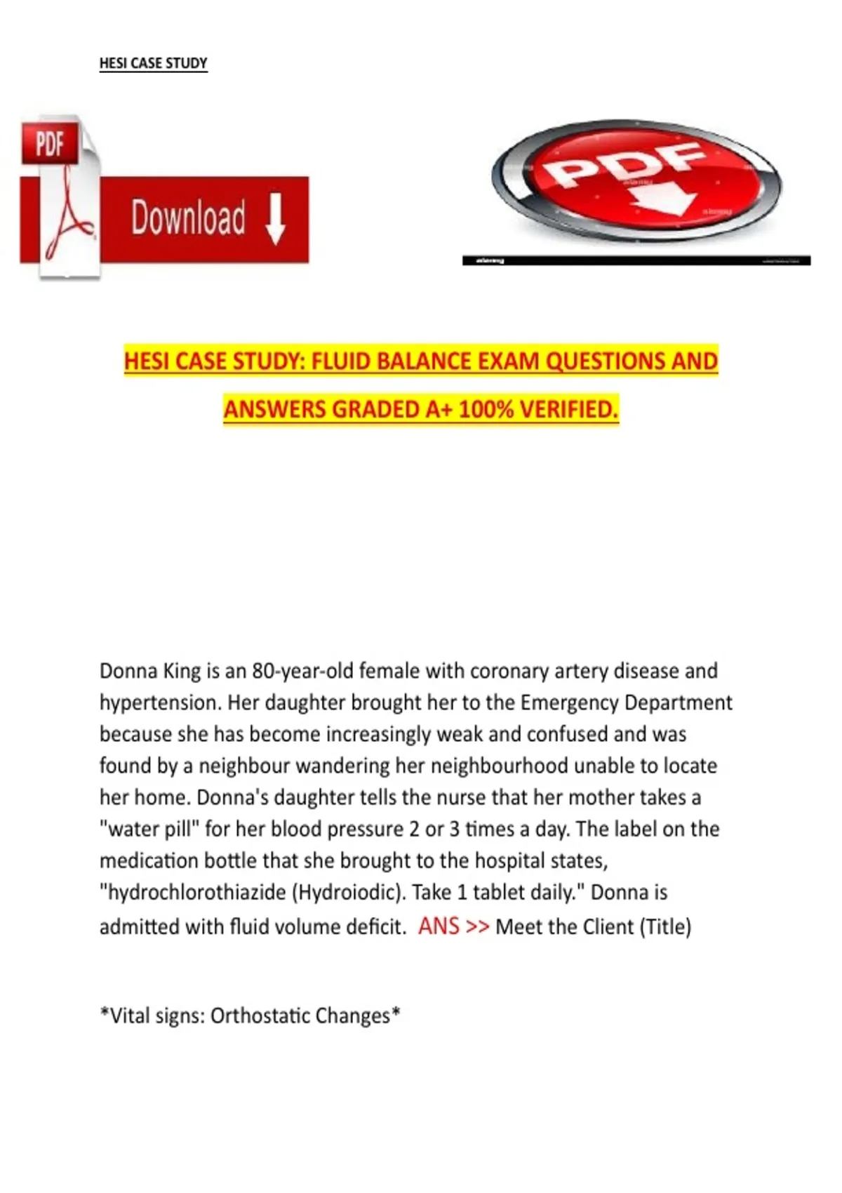 HESI CASE STUDY: FLUID BALANCE EXAM QUESTIONS AND