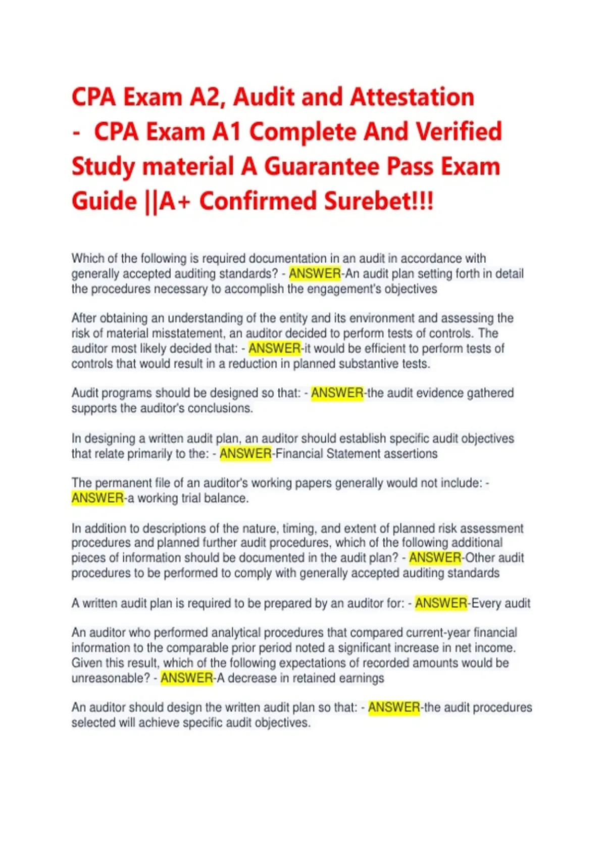CPA AUD Exam Guide (A2): Complete Study Material & Tips Audit & Attestation (AUD) CPA Review - A2 Study Guide