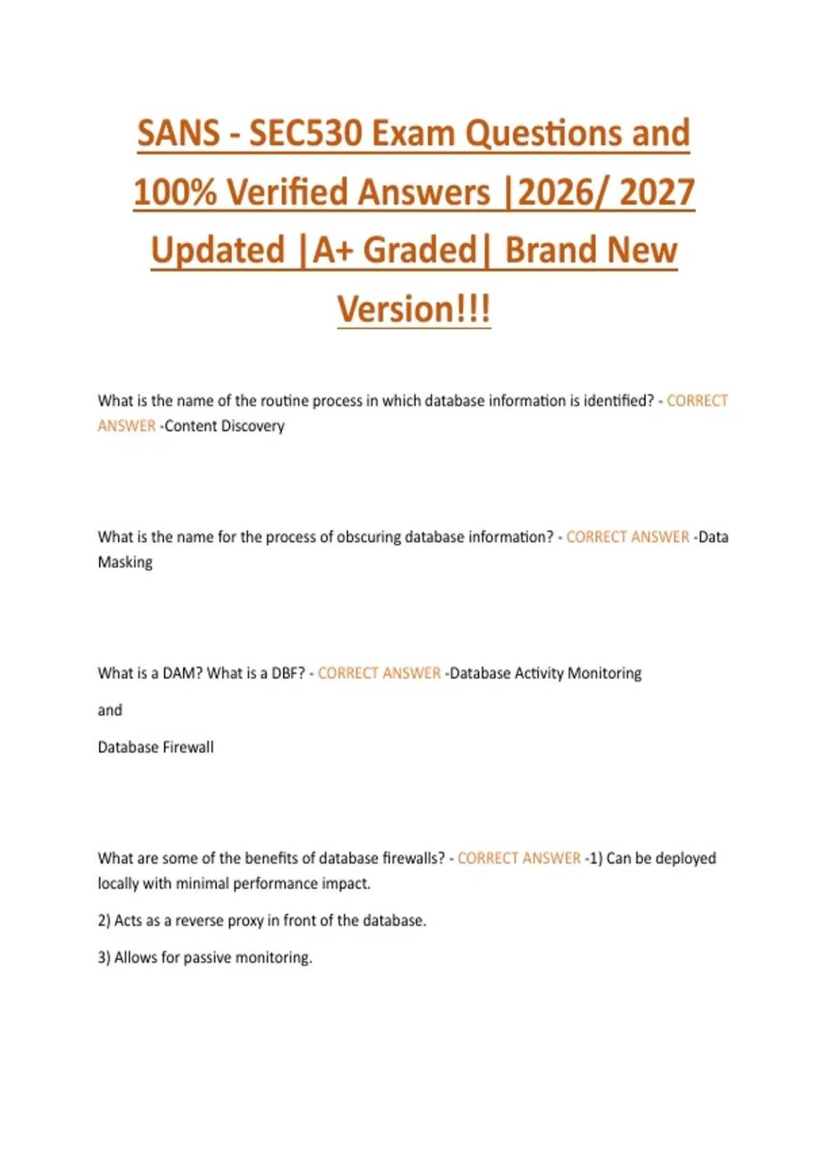 What are some of the benefits of database firewalls? - CORRECT ANSWER -1) Can be deployed