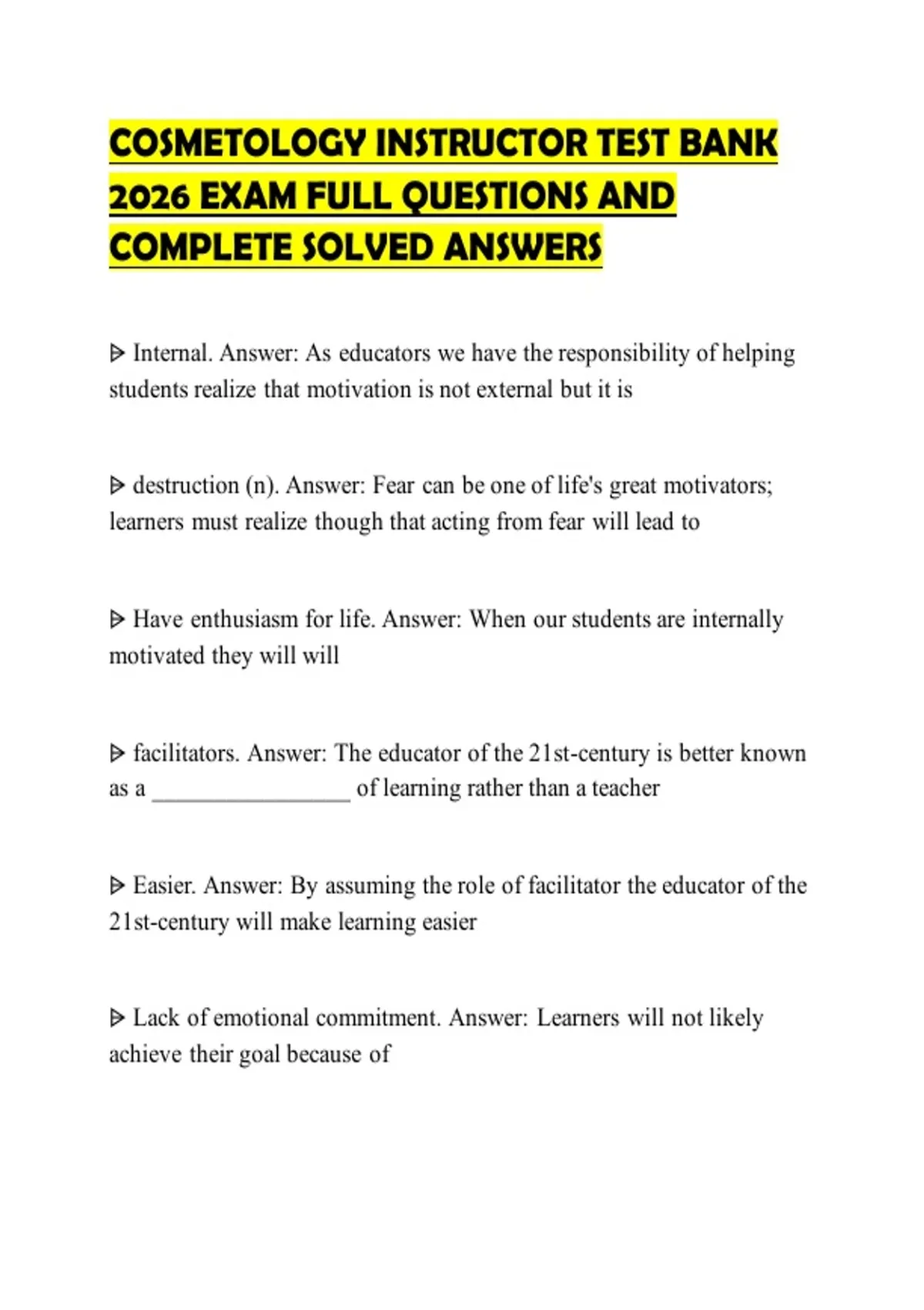 COSMETOLOGY INSTRUCTOR TEST BANK