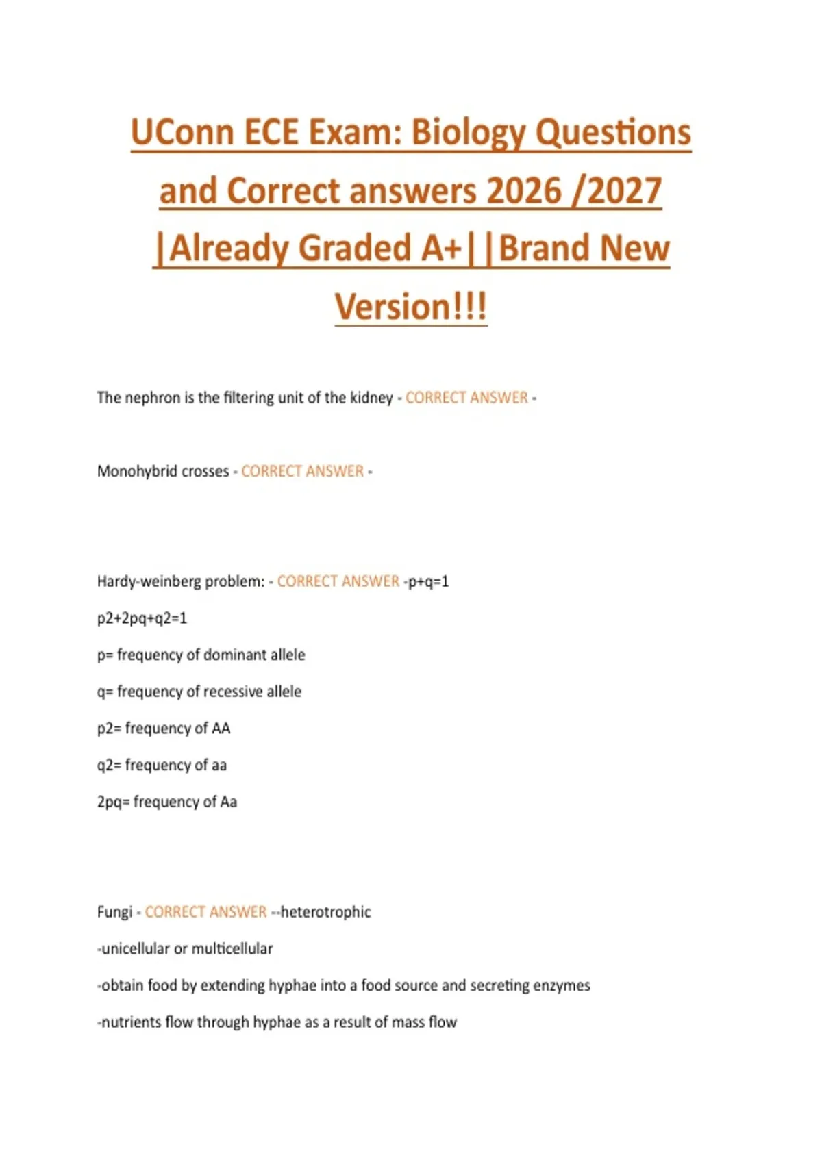 UConn ECE Exam: Biology Questions and Correct answers 2026 /2027 |Already Graded A+||Brand New Version!!!