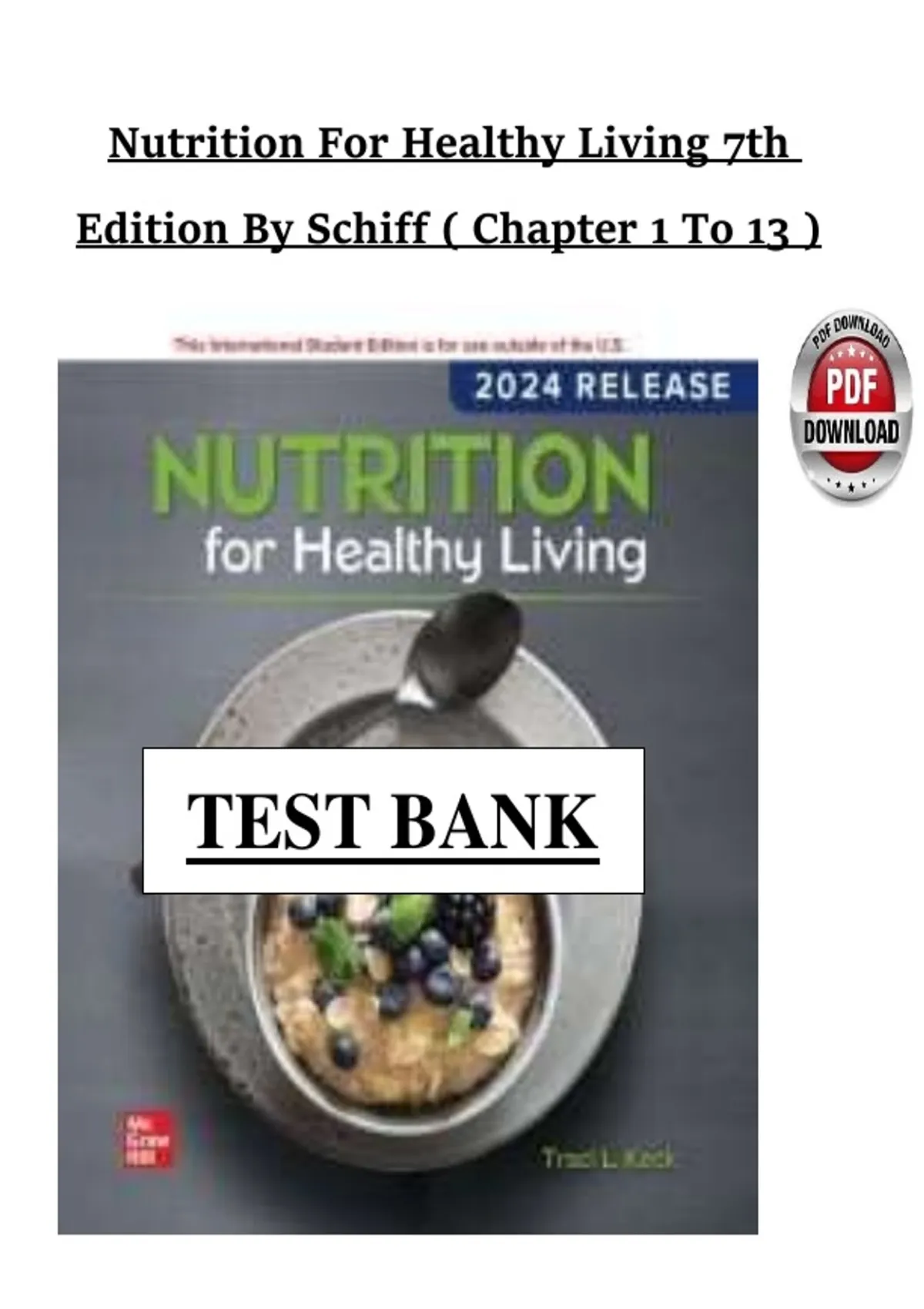 INSTANT PDF DOWNLOAD! Access the complete Test Bank for Nutrition for Healthy Living, 7th Edition by Schiff. This fully updated PDF covers all 13 chapters with detailed questions and answers, making it ideal for exam prep, homework, and study sessions. Perfect for nutrition and health science students seeking a reliable and comprehensive resource to excel in their courses and improve grades. Nutrition for Healthy Living test bank, Schiff 7th edition PDF, nutrition exam prep, health science study guide, nutrition homework help, dietetics practice questions, nutrition PDF solutions, college nutrition material, nutrition textbook answers, health and wellness study guide, nutrition chapter exercises, nutrition course material, student nutrition resources, diet and health exam prep, nutrition assignment help, healthy living study material, nutrition review PDF, nutrition exam questions, dietetics student PDF, nutrition practice test