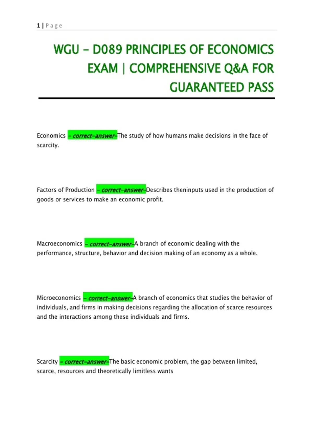 WGU - D089 PRINCIPLES OF ECONOMICS