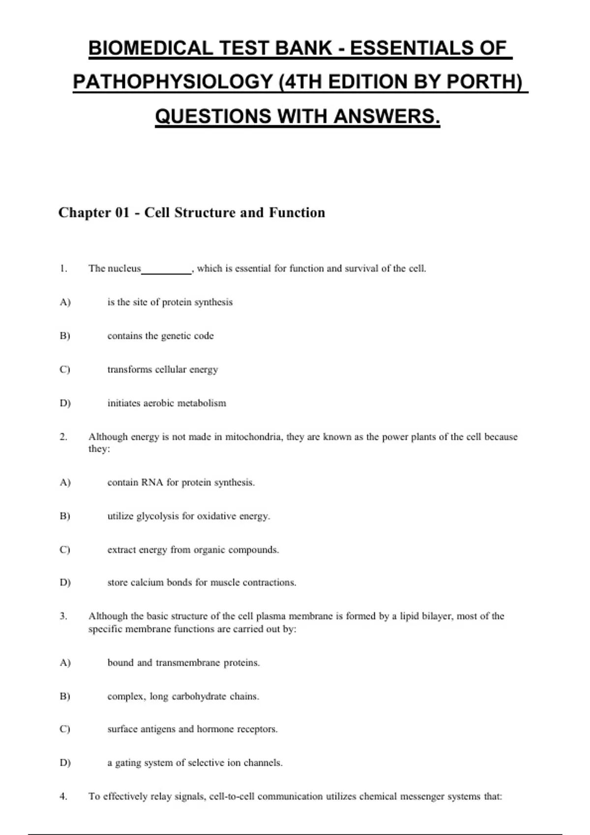 , 2027//BIOMEDICAL TEST BANK - ESSENTIALS OF PATHOPHYSIOLOGY