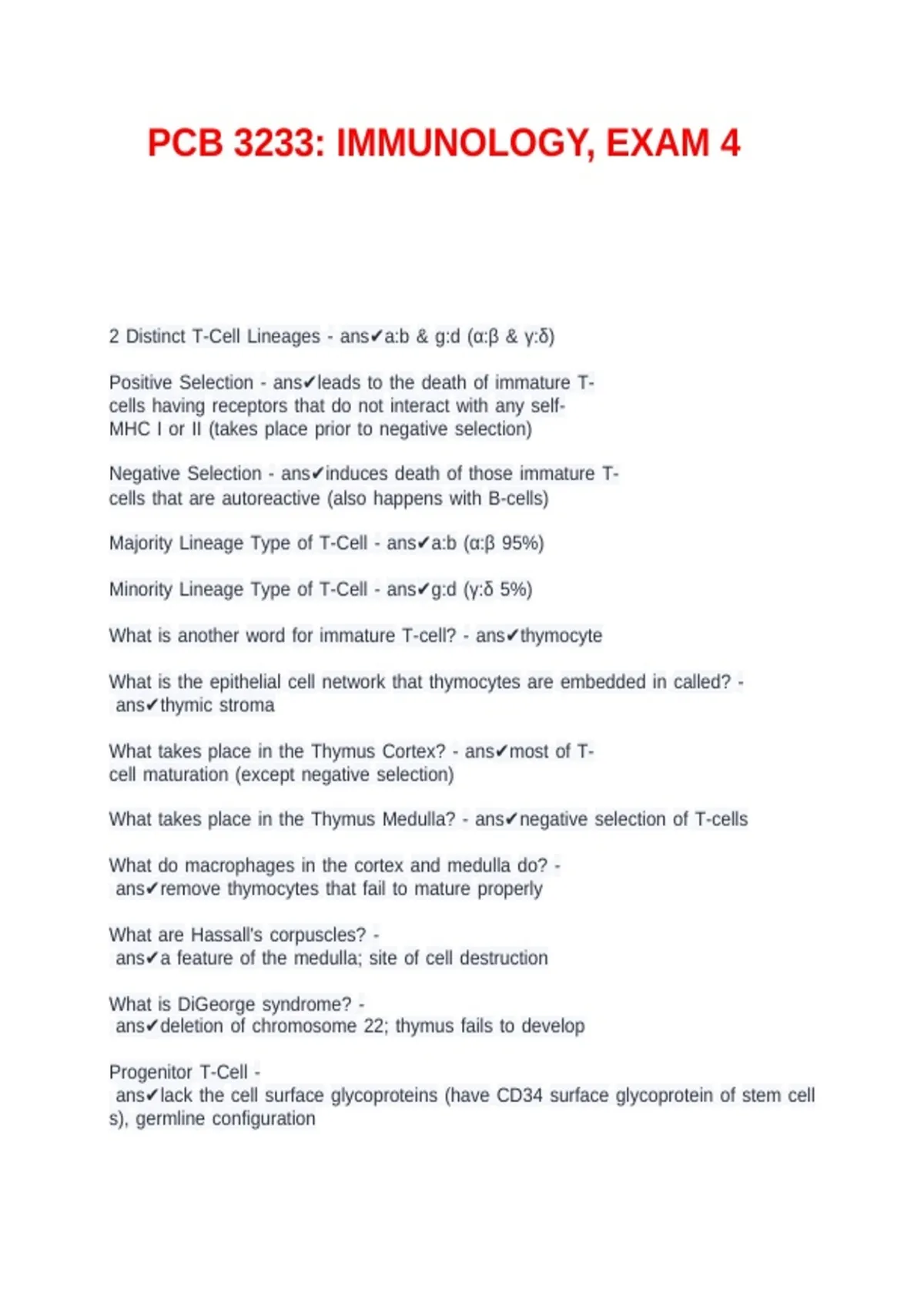 PCB 3233: IMMUNOLOGY, EXAM 4