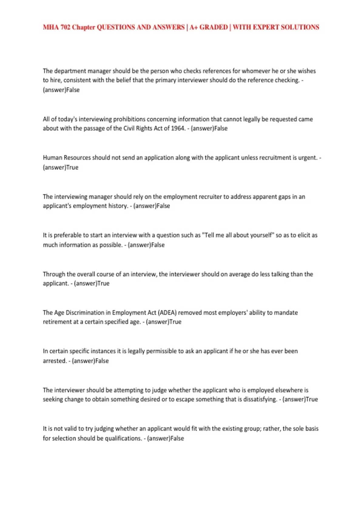 , MHA 702 Chapter QUESTIONS AND ANSWERS | A+ GRADED | WITH EXPERT SOLUTIONS