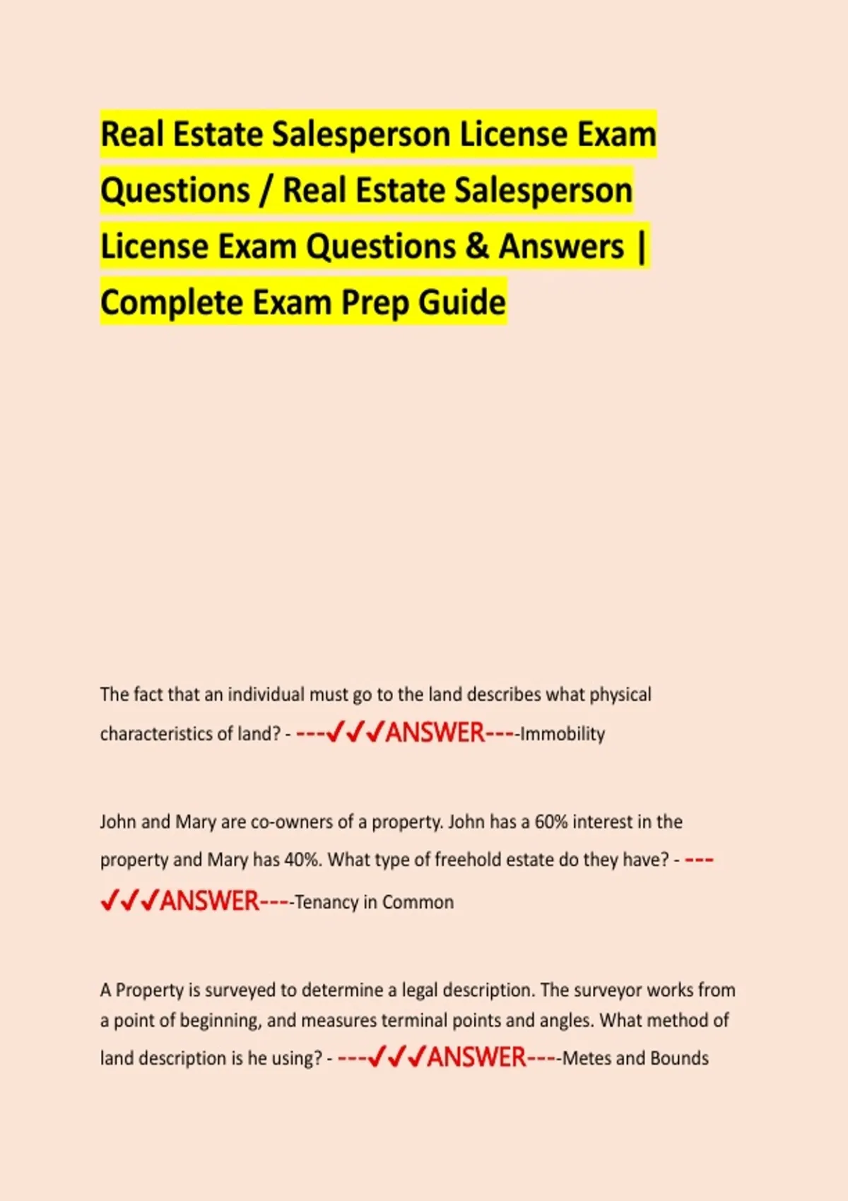 Real Estate Salesperson License Exam Questions / Real Estate Salesperson License Exam Questions & Answers | Complete Exam Prep Guide