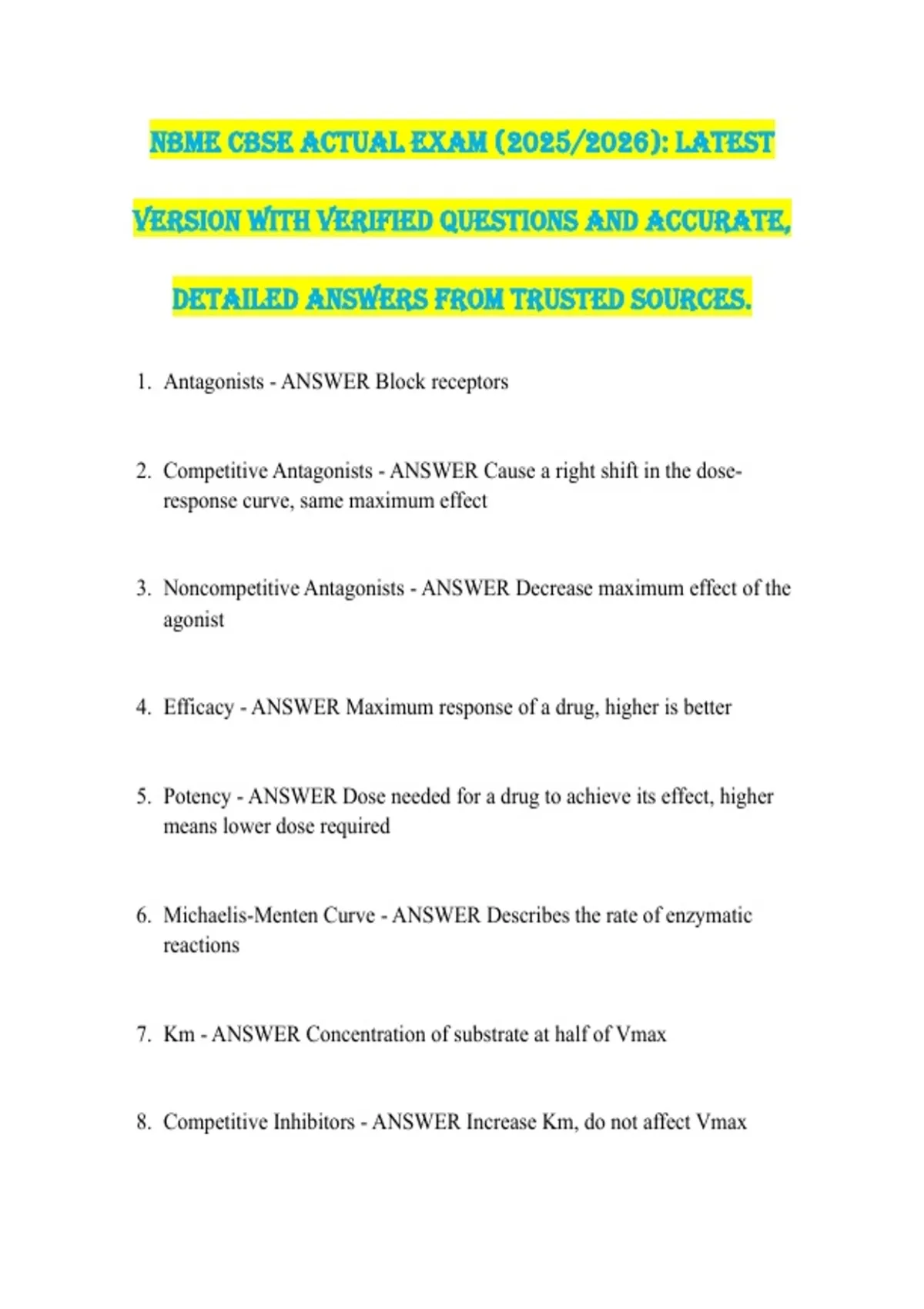 1. Antagonists - ANSWER Block receptors
