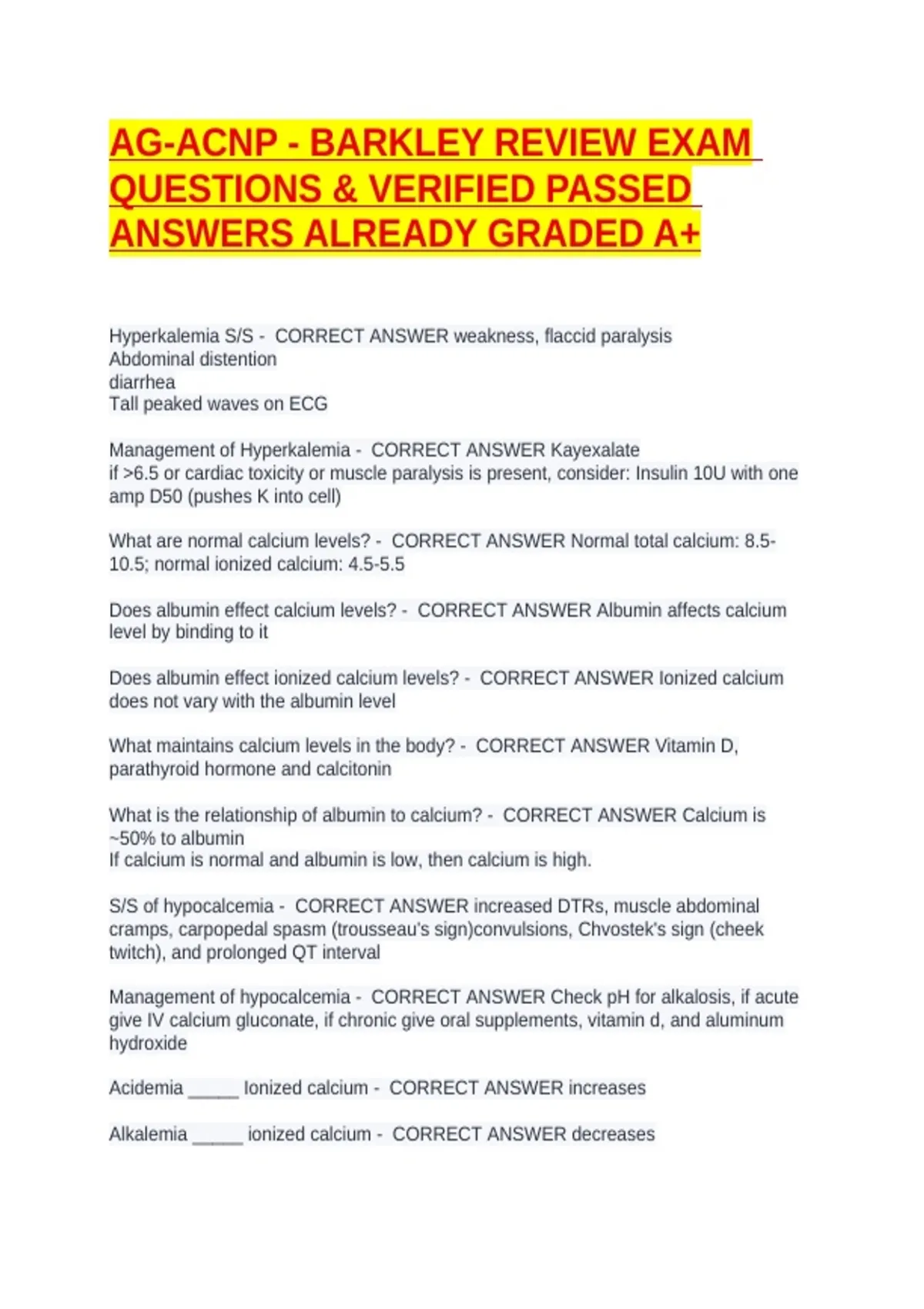 Does albumin effect calcium levels? - CORRECT ANSWER Albumin affects calcium