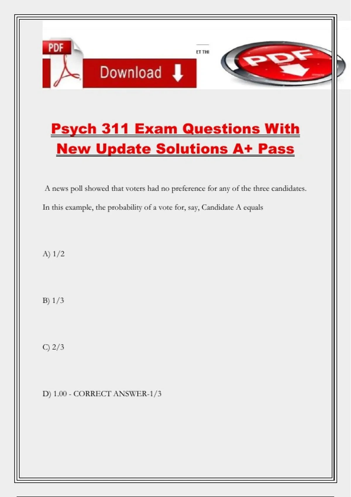 D) 1.00 - CORRECT ANSWER-1/3