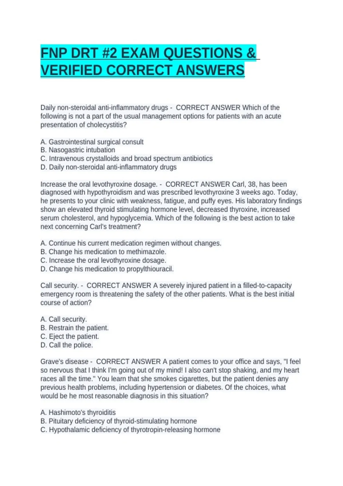 FNP DRT #2 EXAM QUESTIONS &