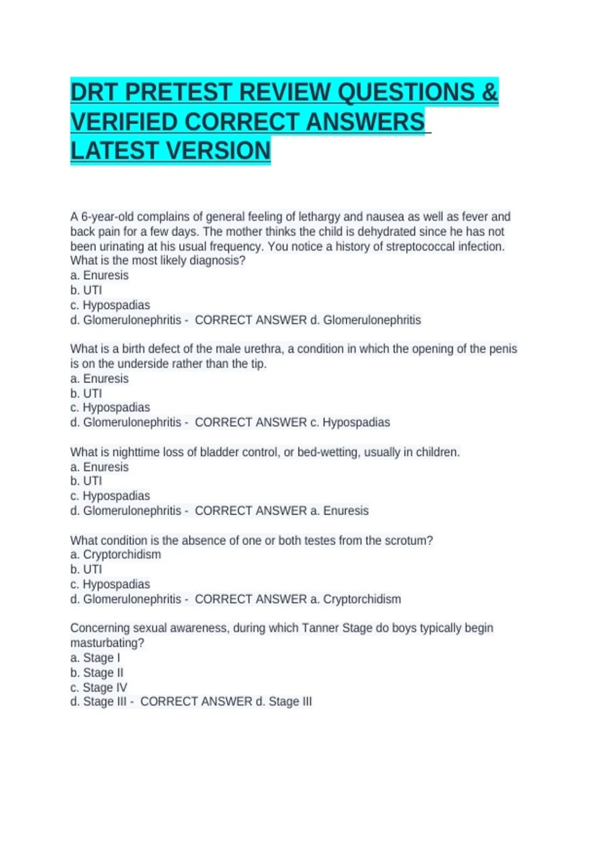 DRT PRETEST REVIEW QUESTIONS & VERIFIED CORRECT ANSWERS LATEST VERSION