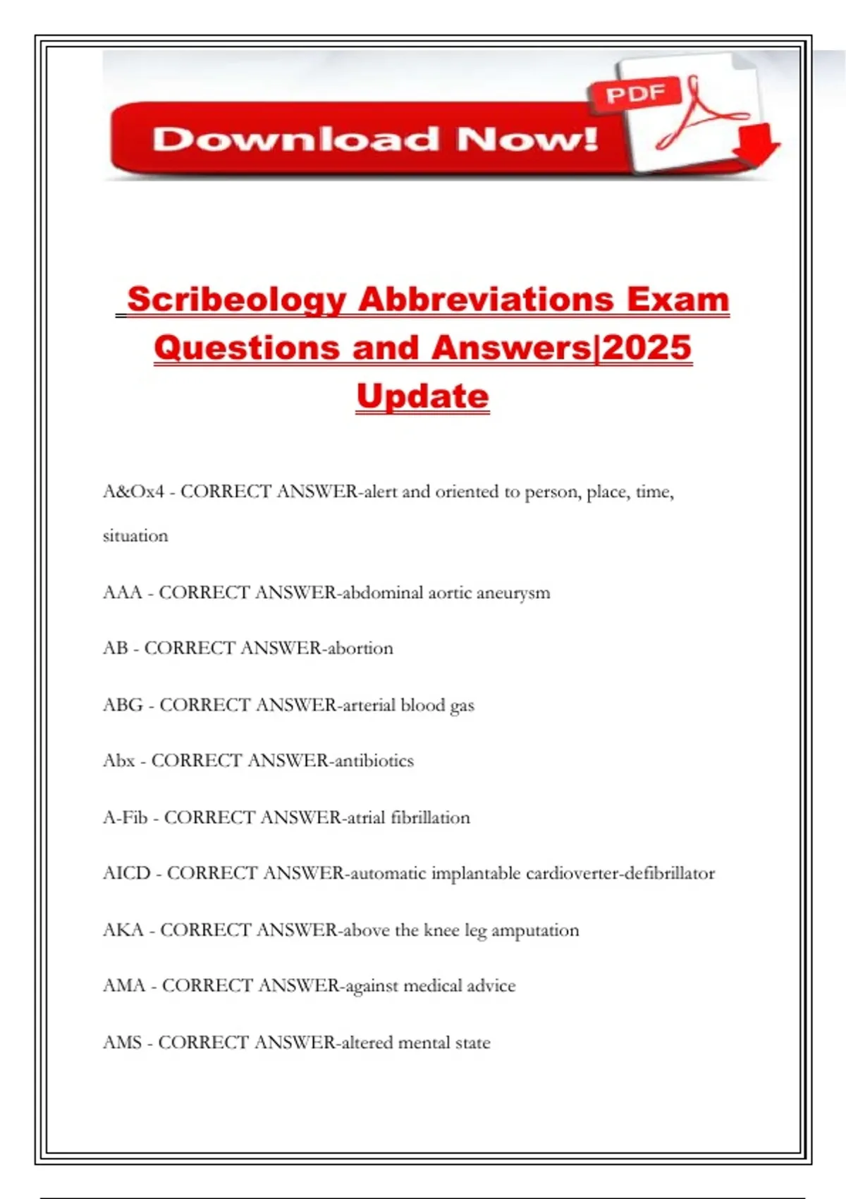 Scribeology Abbreviations Exam Questions and Answers|2025 Update