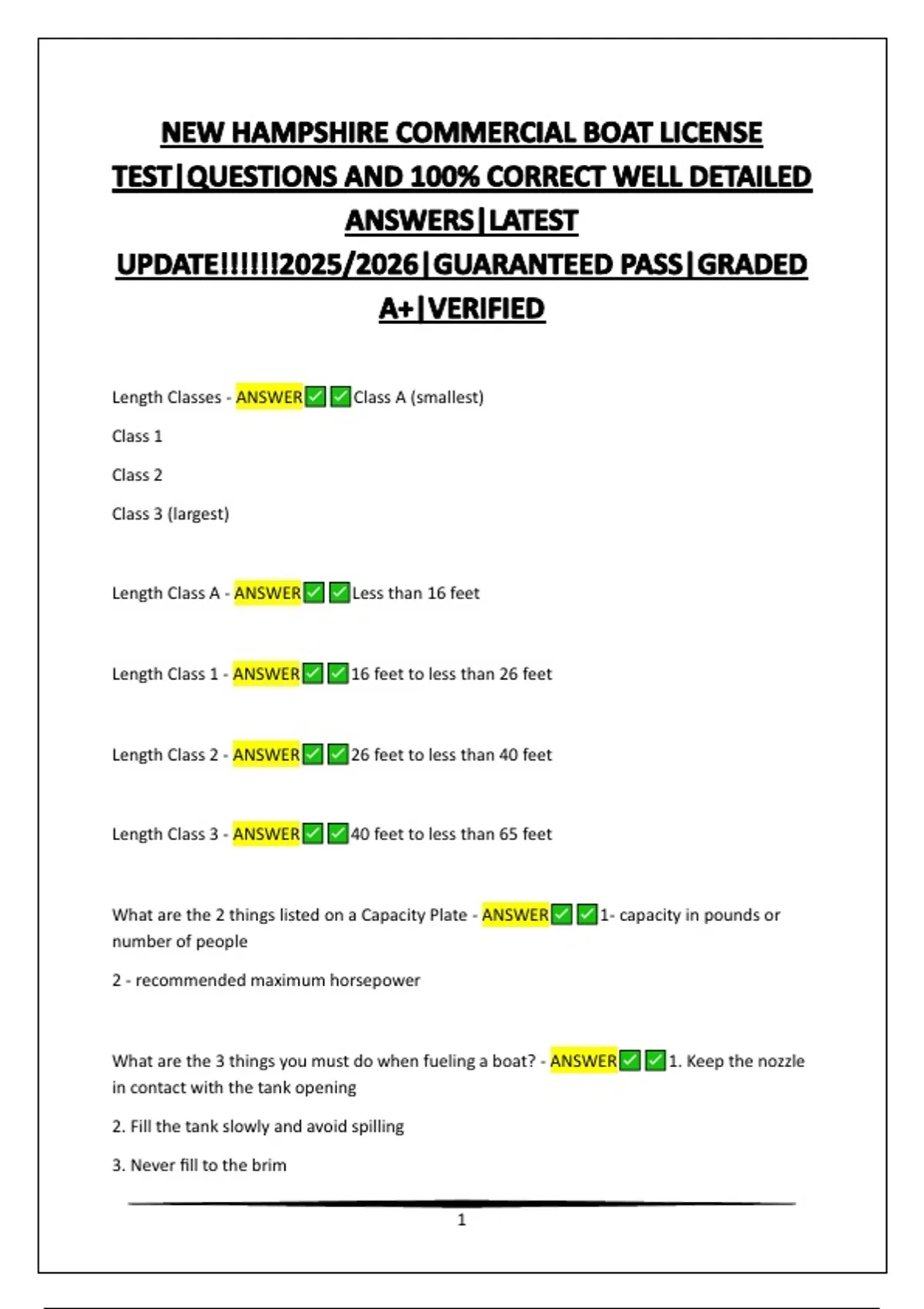 What is the minimum age to take the commercial boating test? - ANSWER 18 (16 to