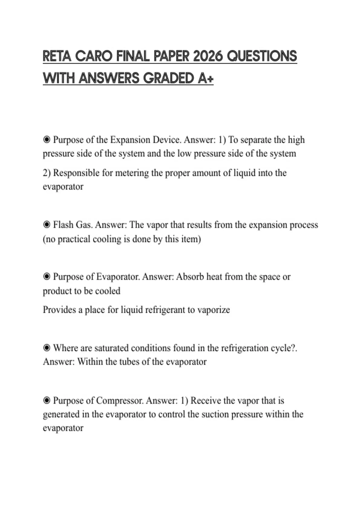 RETA CARO FINAL PAPER 2026 QUESTIONS WITH ANSWERS GRADED A+