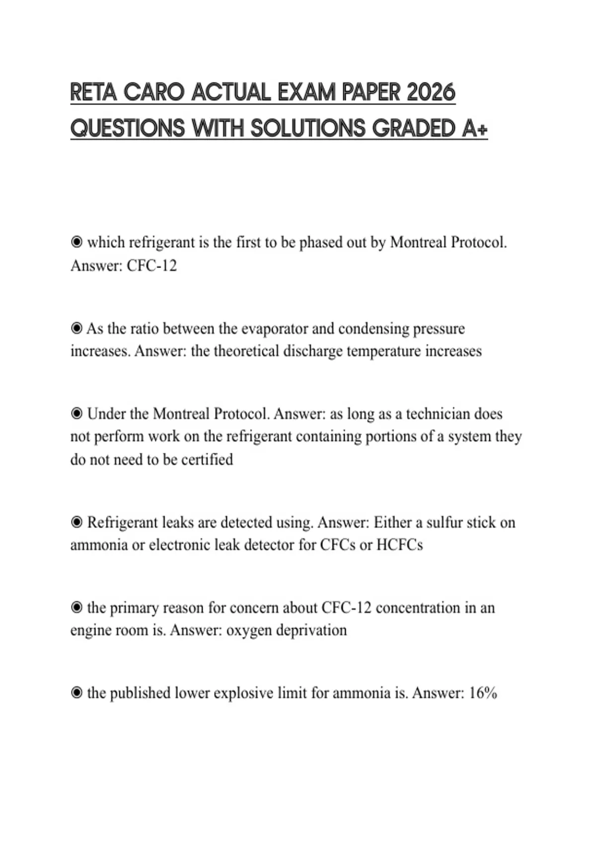 RETA CARO ACTUAL EXAM PAPER 2026 QUESTIONS WITH SOLUTIONS GRADED A+