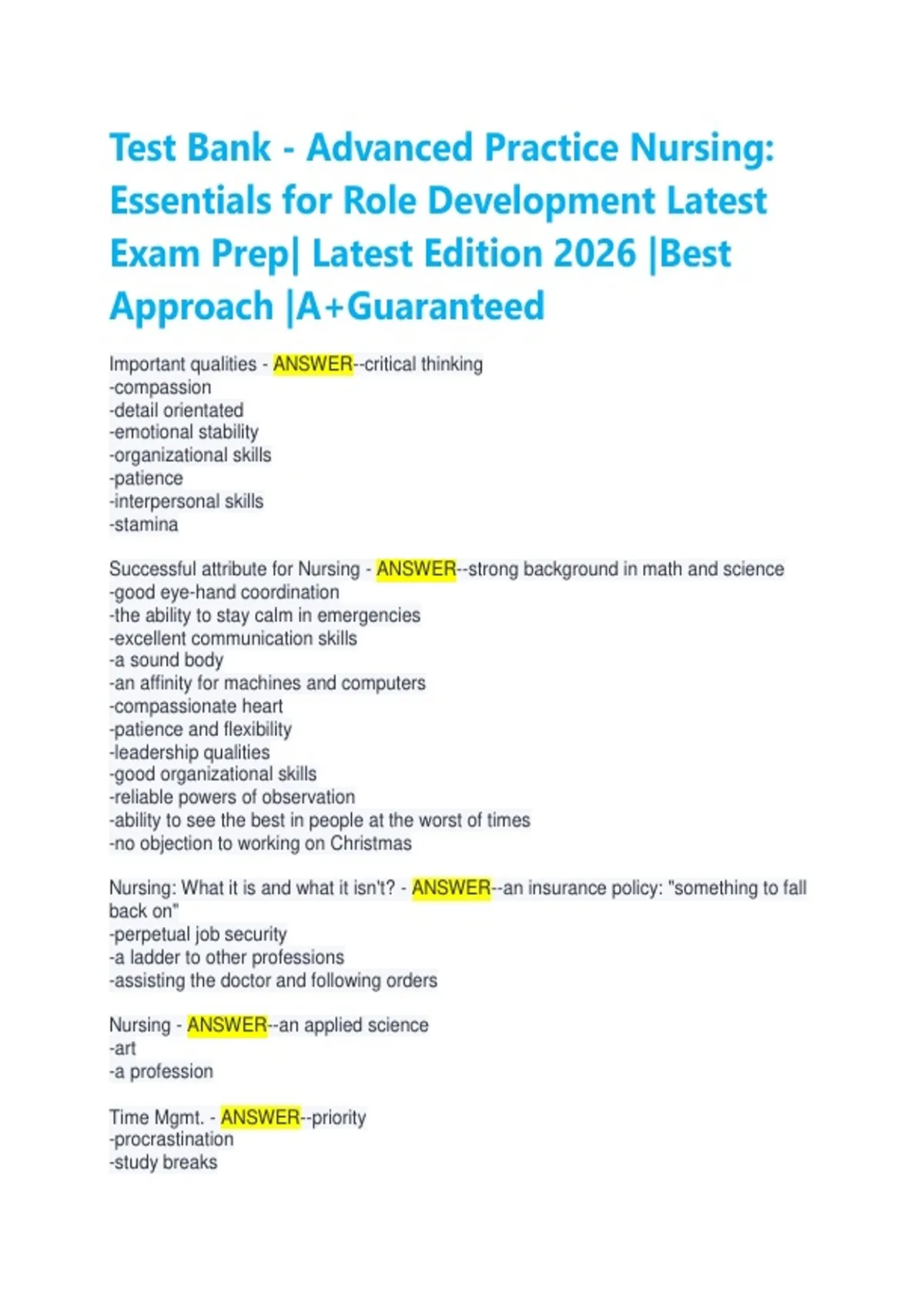 Test Bank - Advanced Practice Nursing: