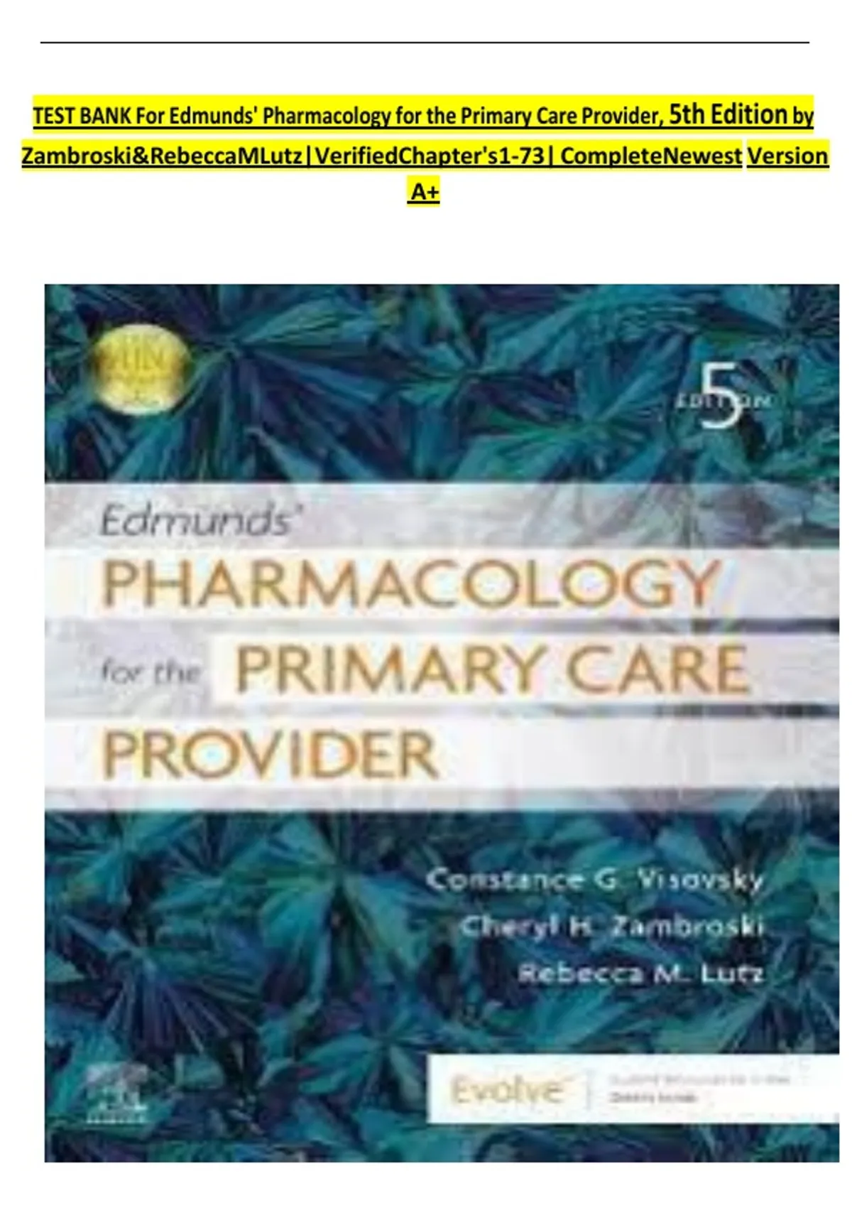 TEST BANK For Edmunds' Pharmacology for the Primary Care Provider, 5th Edition by
