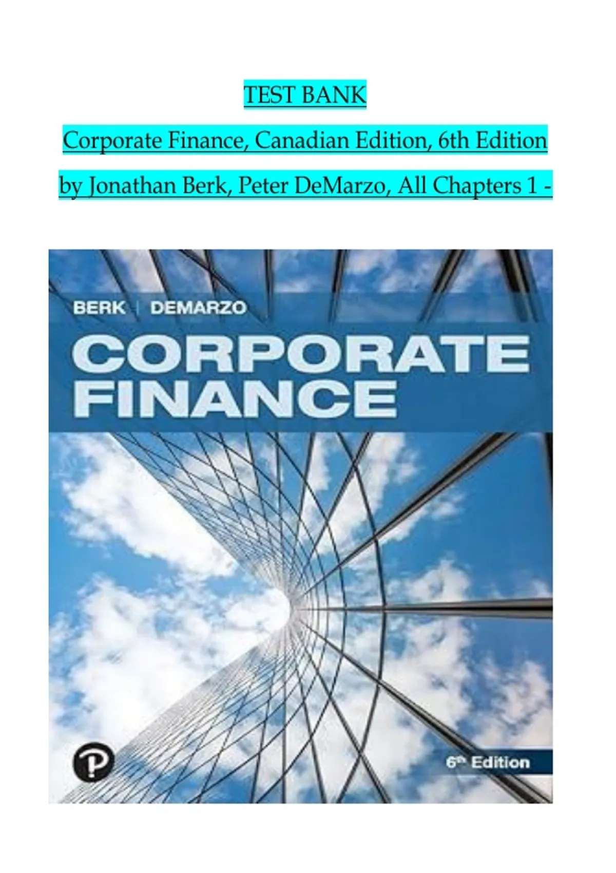 TEST BANK Corporate Finance, Canadian Edition, 6th Edition by Jonathan Berk, Peter DeMarzo, All Chapters 1