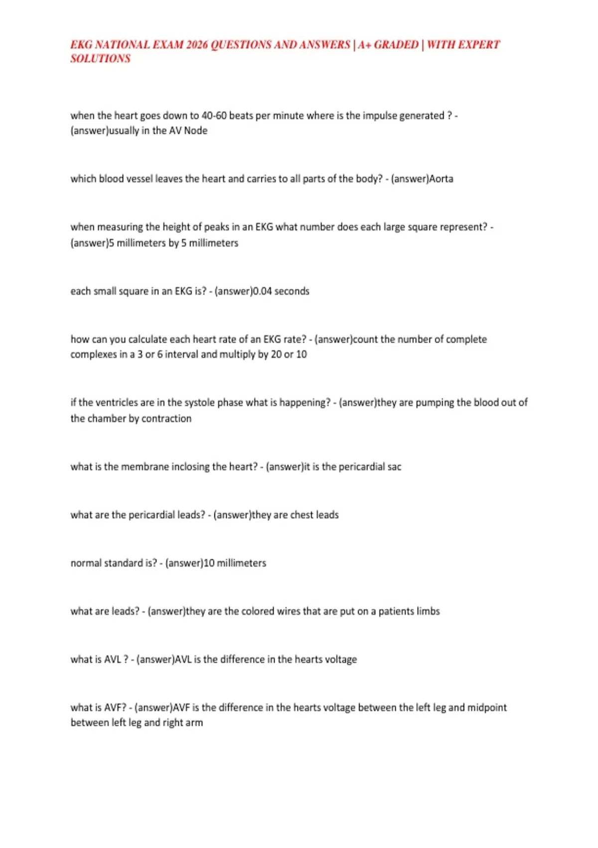 , EKG NATIONAL EXAM 2026 QUESTIONS AND ANSWERS | A+ GRADED | WITH EXPERT