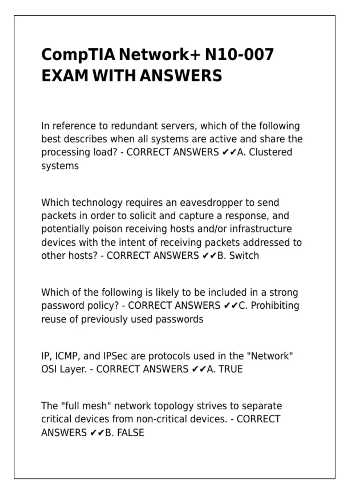 CompTIA Network+ N10-007 EXAM WITH ANSWERS