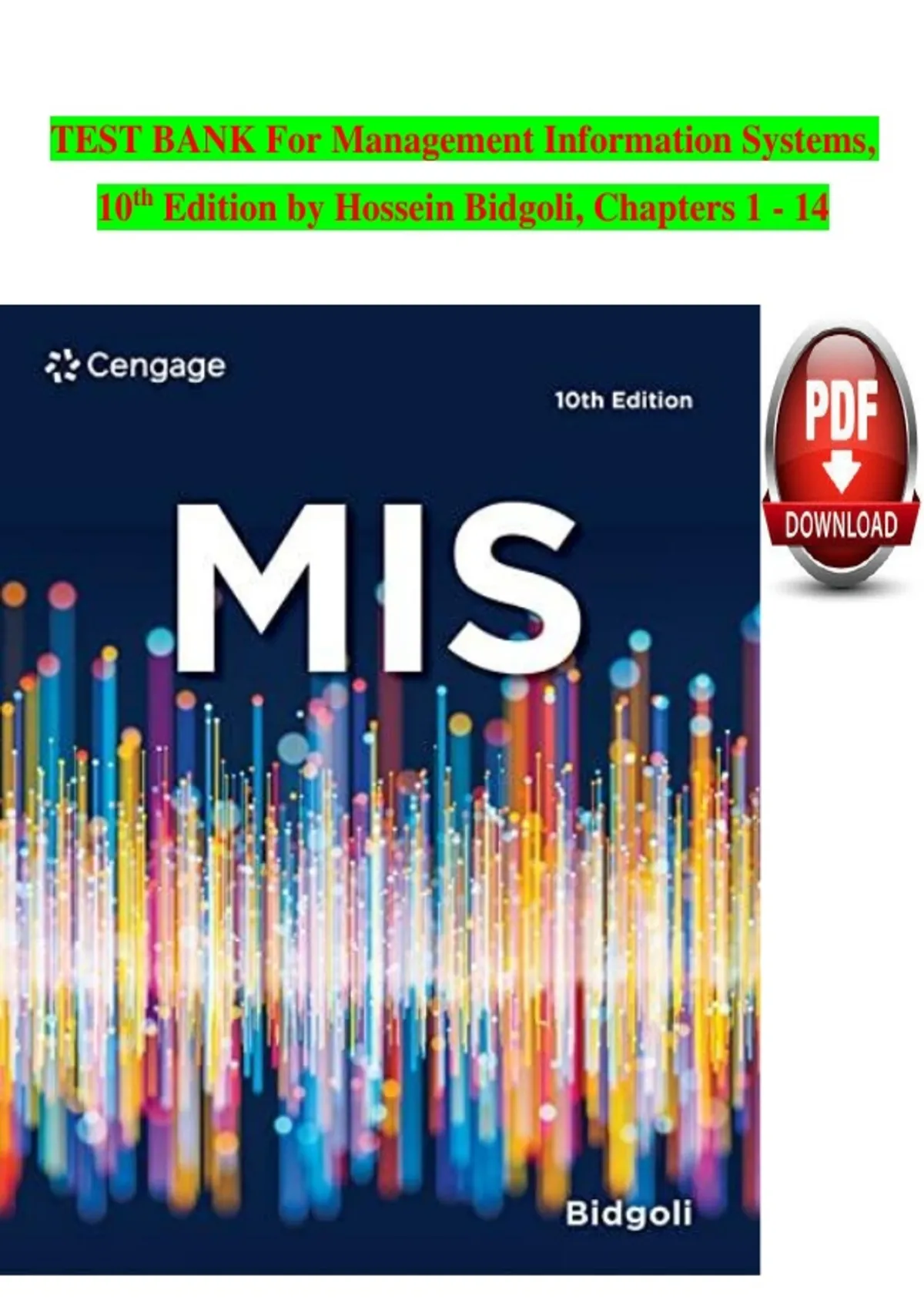 Prepare confidently for management information systems exams, quizzes, and coursework with this comprehensive Test Bank for MIS, 10th Edition — fully updated for 2026! This essential academic resource includes a broad range of practice questions paired with 100% accurate answers, aligned with the textbook’s content and structured to mirror real classroom, case study, and exam formats used in business and information systems programs. Ideal for students in MIS, business administration, IT management, and related fields, this test bank reinforces key concepts such as the role of information systems in organizations, data management, systems development, networking and telecommunications, cybersecurity, e-business, decision support systems, and ethical/legal issues in IT. Whether you’re preparing for chapter quizzes, unit exams, midterms, finals, or professional certification review, this test bank strengthens your understanding, boosts retention, and enhances your ability to apply MIS principles to real-world business challenges. Author: Hossein Bidgoli