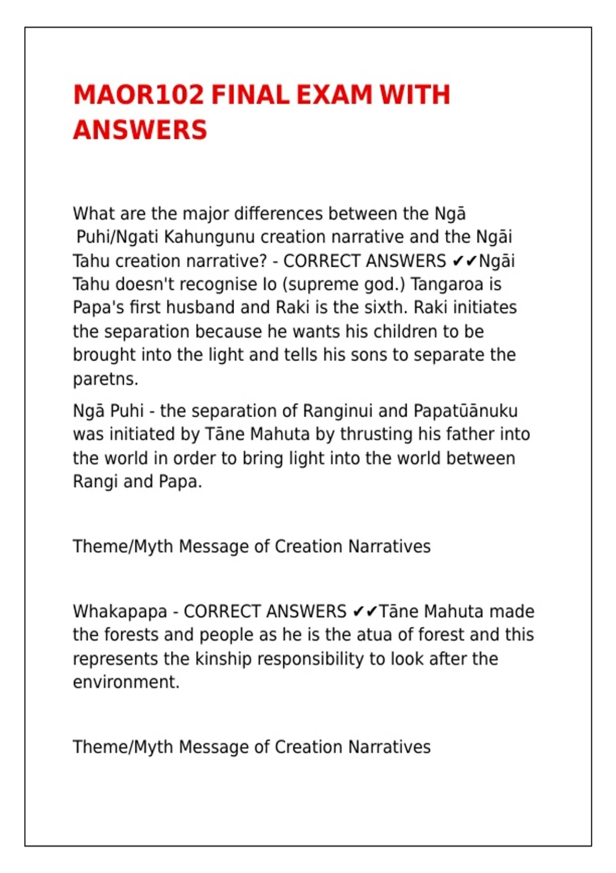 Tahu creation narrative? - CORRECT ANSWERS ✔✔Ngāi