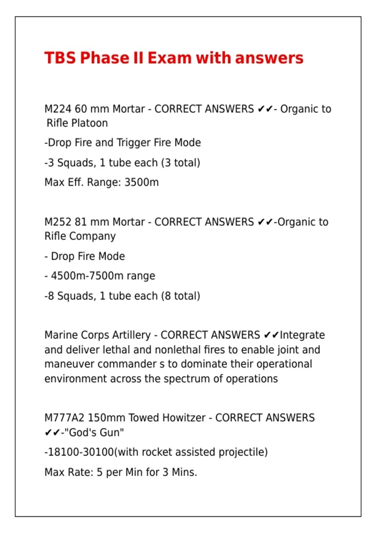 M252 81 mm Mortar - CORRECT ANSWERS ✔✔-Organic to