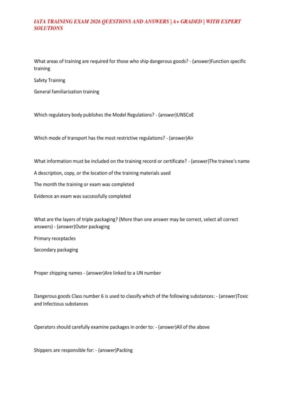 , IATA TRAINING EXAM 2026 QUESTIONS AND ANSWERS | A+ GRADED | WITH EXPERT