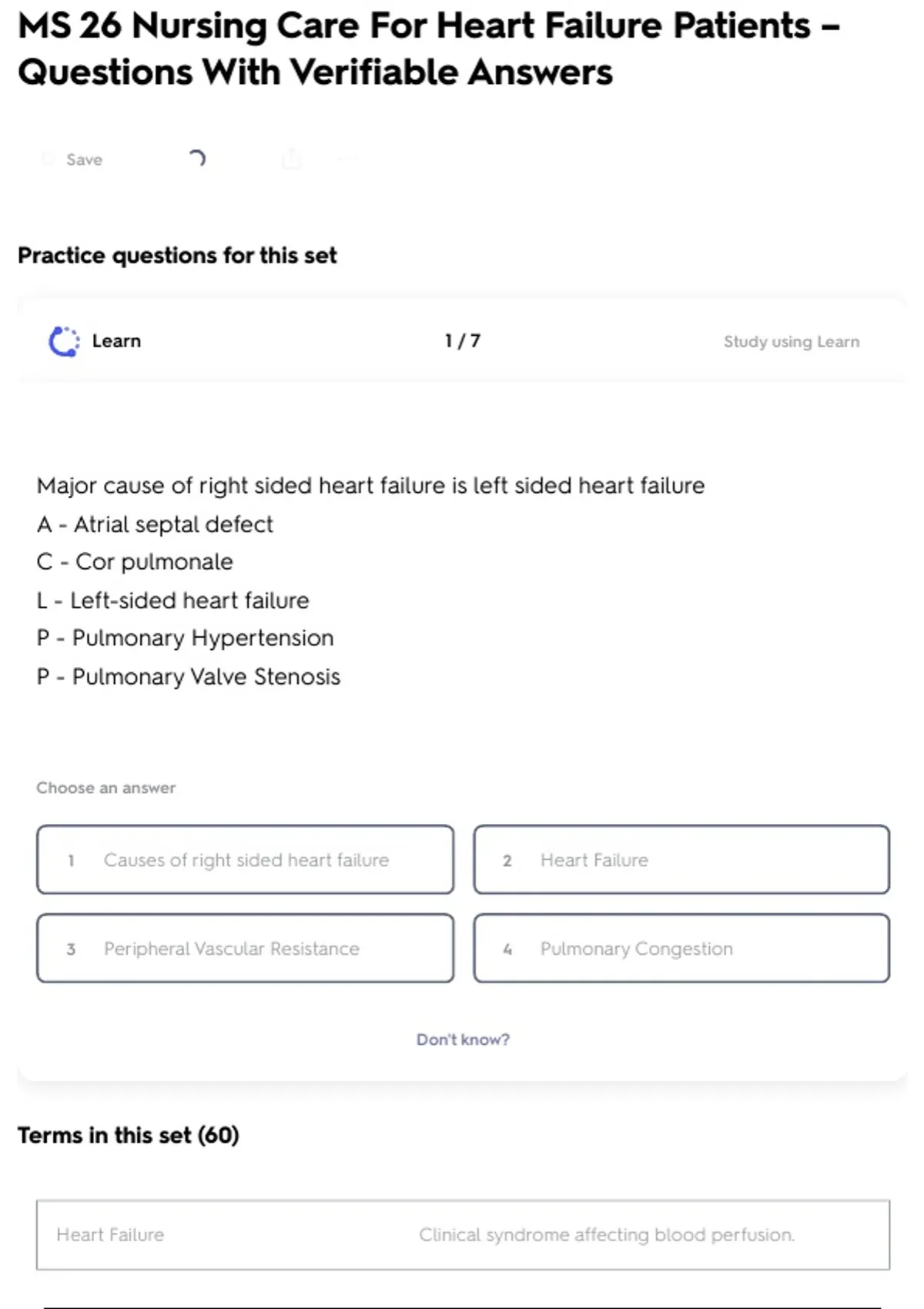 MS 26 Nursing Care For Heart Failure Patients – Questions With Verifiable Answers