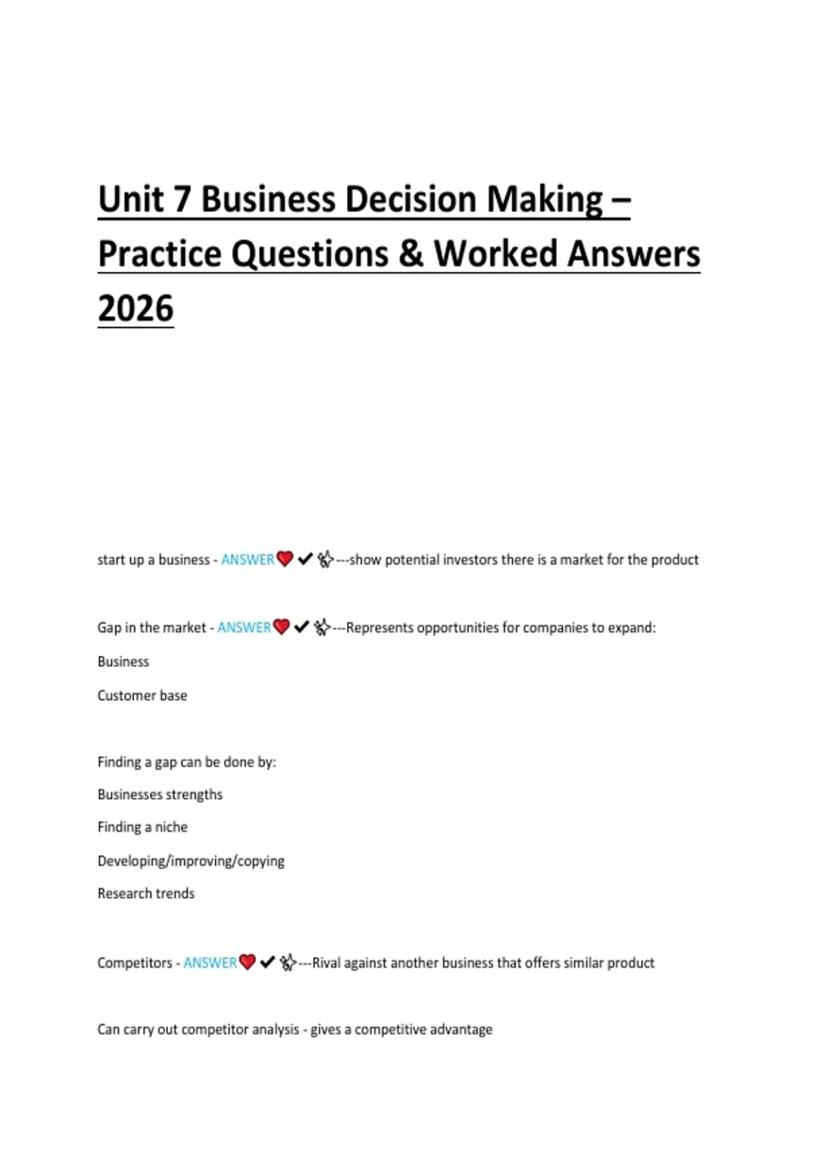 Unit 7 Business Decision Making – Practice Questions & Worked Answers 2026