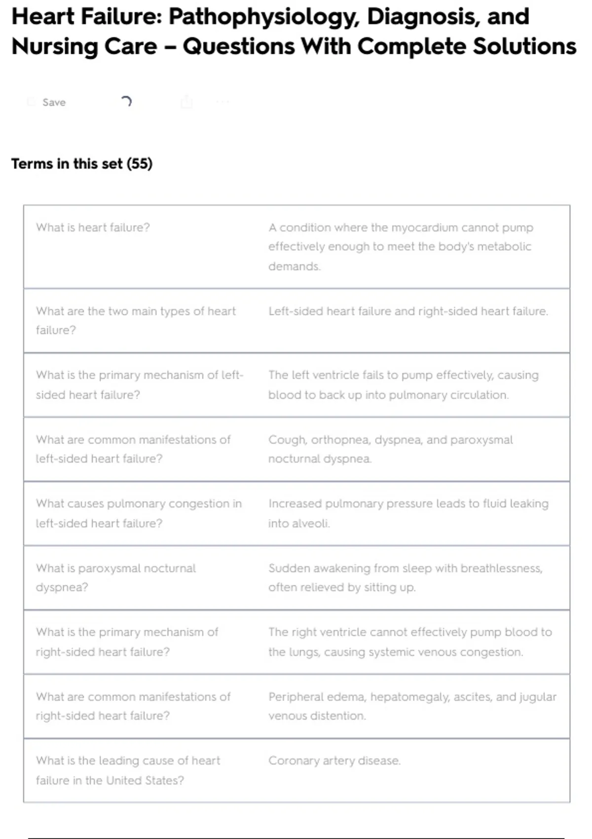 Heart Failure: Pathophysiology, Diagnosis, and Nursing Care – Questions With Complete Solutions